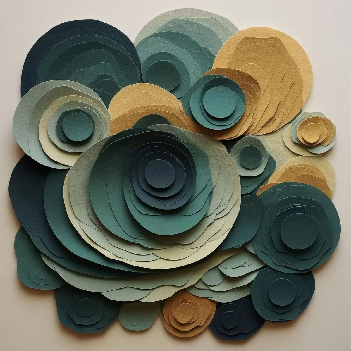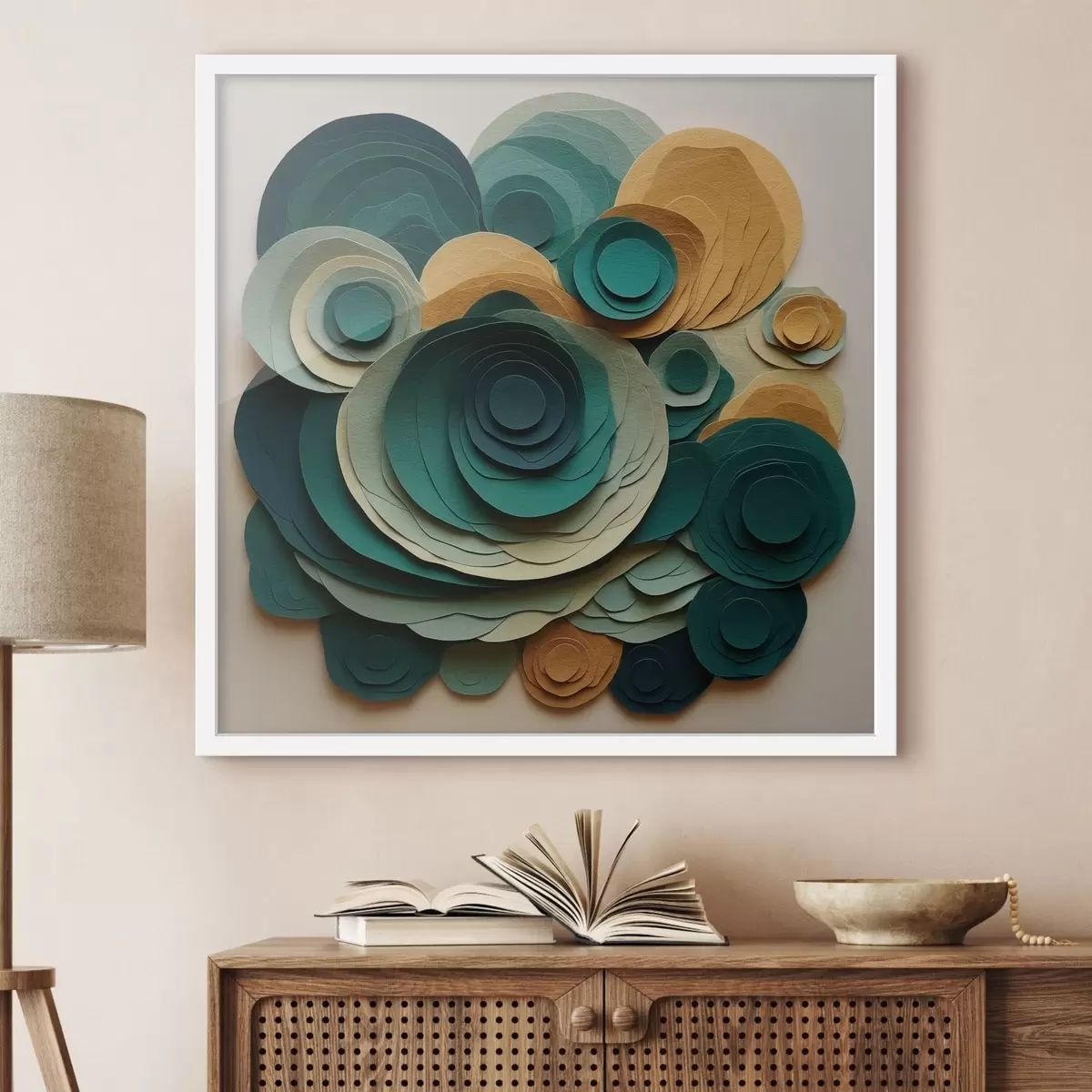 Poster Gelaagde papieren cirkels in groene en beige tinten N° f48332