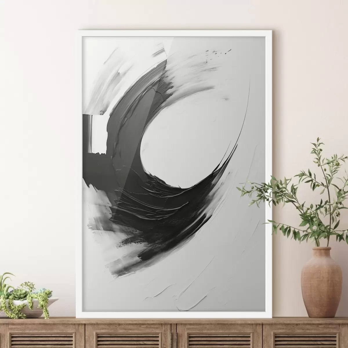 Poster Abstracte zwarte penseelstreek op een lichte achtergrond N° f48340