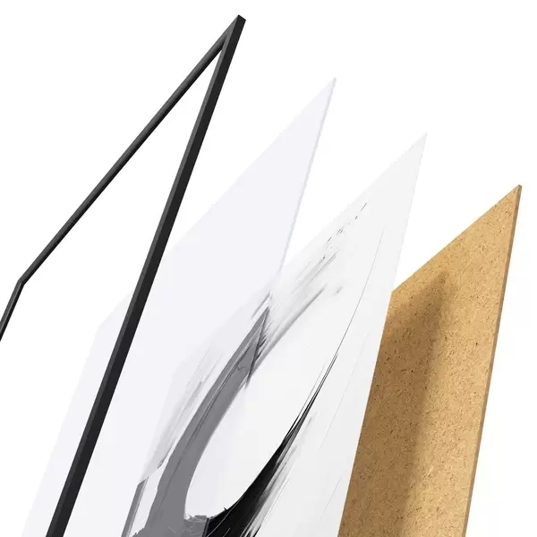 De poster bestaat uit een frame, plexiglas, geprinte afbeelding en spaanplaat achterkant. De poster kan meteen aan de muur worden gehangen dankzij de bevestigingen op de achterkant.
