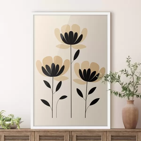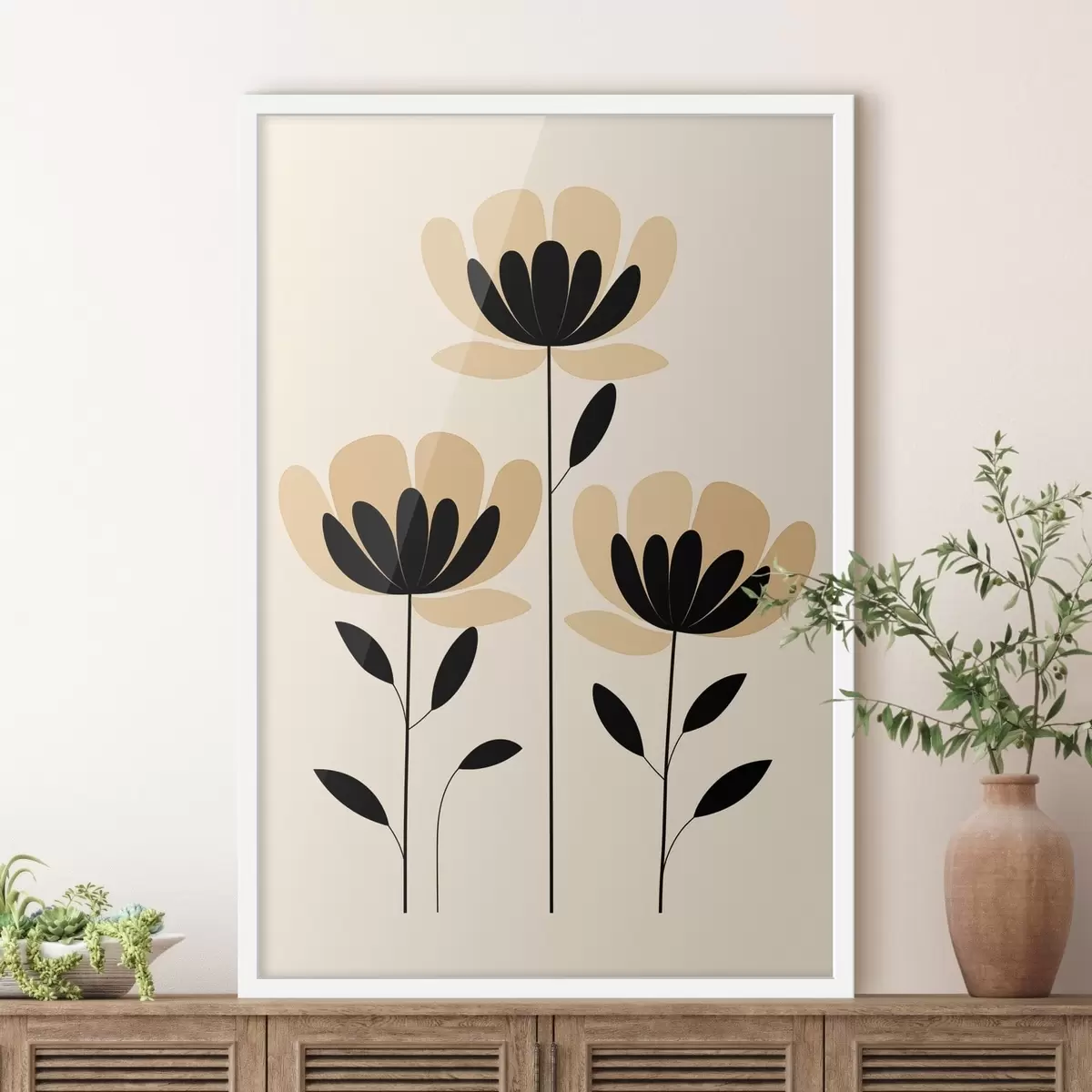 Poster Minimalistische bloemen in zwart en beige N° f48353