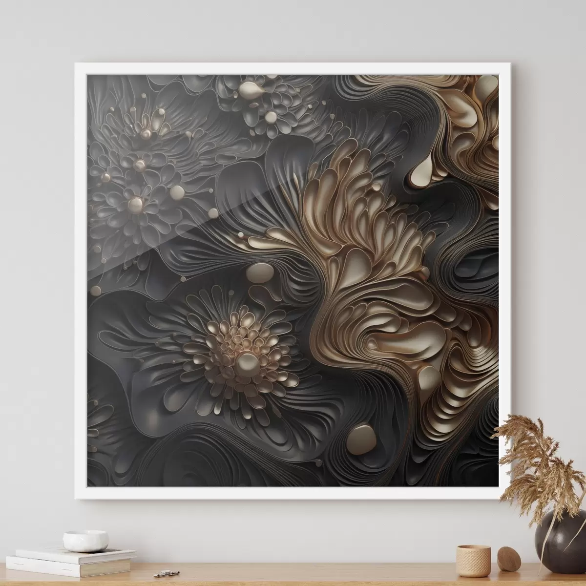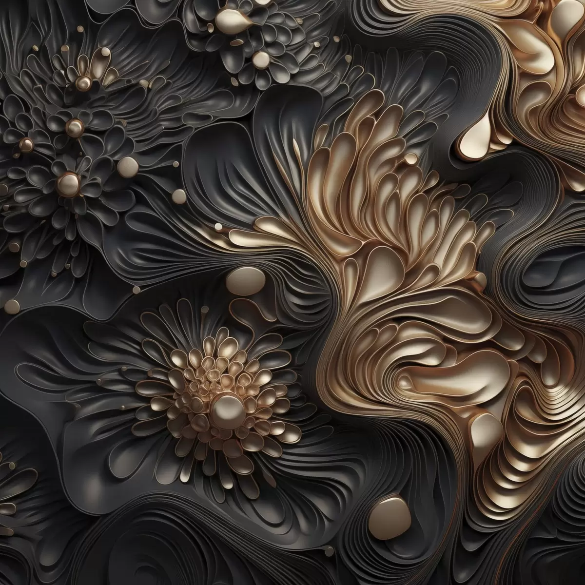 Poster Abstracte, vloeiende, organische donkere vormen die een moderne kunst met textuur vormen N° f48384