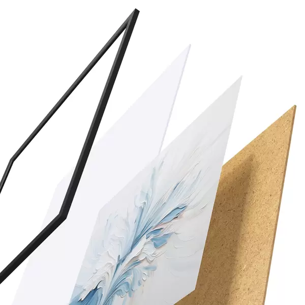 De poster bestaat uit een frame, plexiglas, geprinte afbeelding en spaanplaat achterkant. De poster kan meteen aan de muur worden gehangen dankzij de bevestigingen op de achterkant.