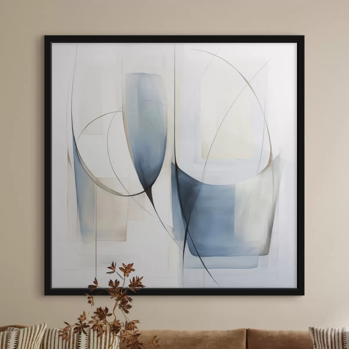 Poster Abstracte, minimalistische compositie met blauwe en beige vormen N° f48403