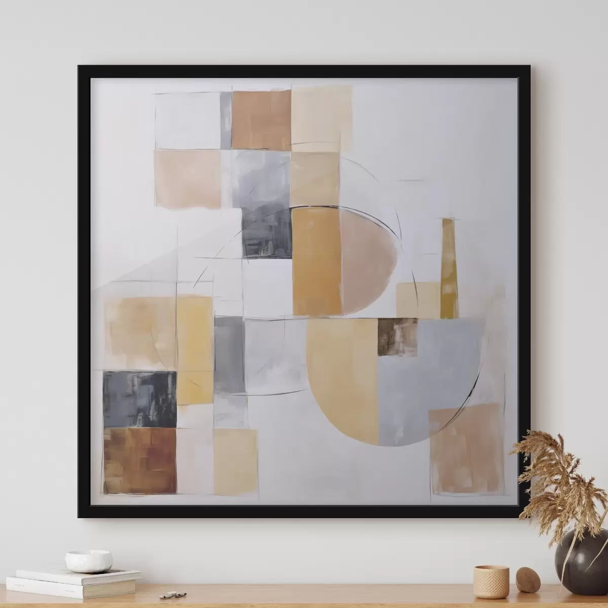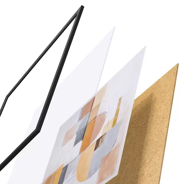 De poster bestaat uit een frame, plexiglas, geprinte afbeelding en spaanplaat achterkant. De poster kan meteen aan de muur worden gehangen dankzij de bevestigingen op de achterkant.