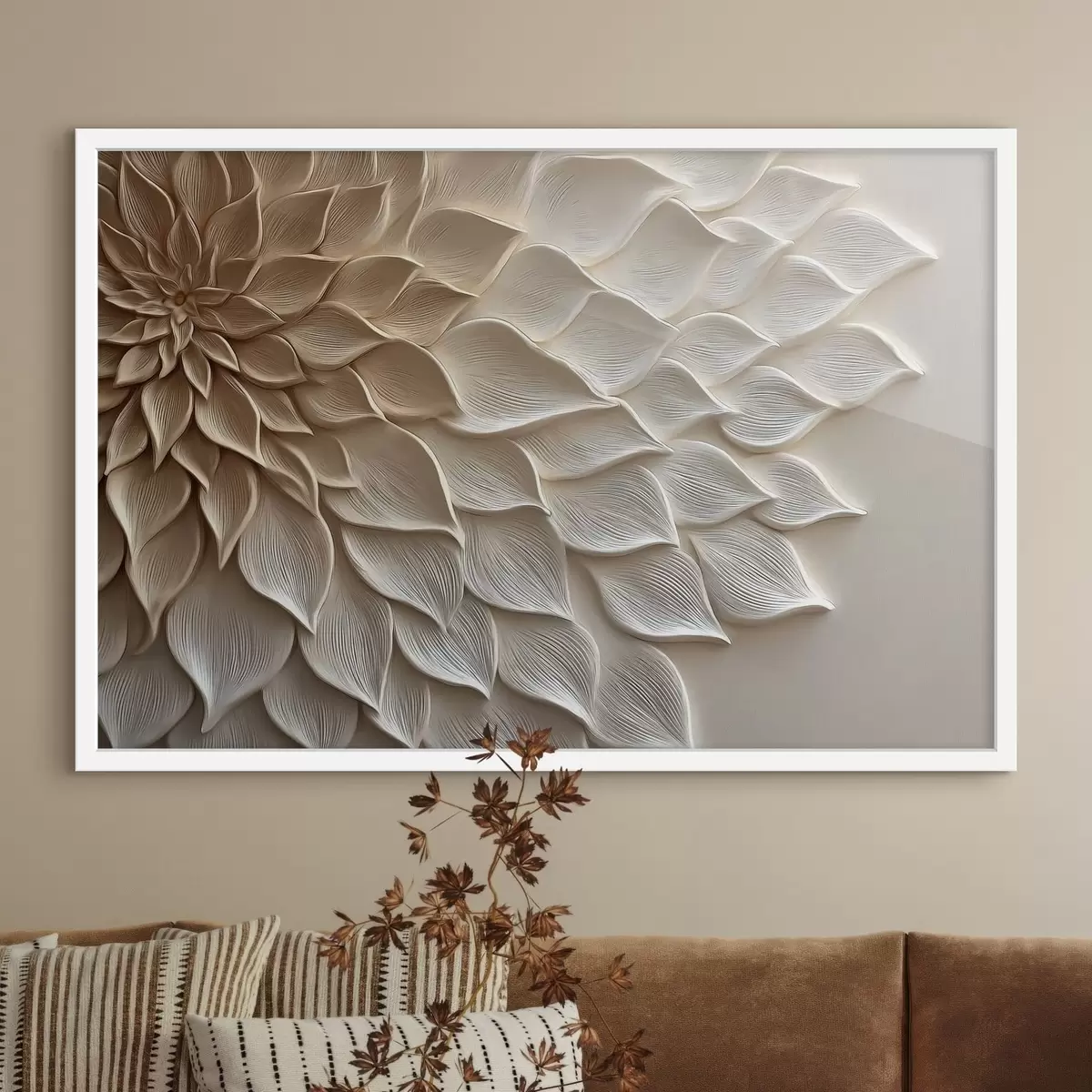 Je kunt het schilderij ophangen aan schroeven. Hiervoor leveren we bevestigingen bij onze foto's, zodat je de foto gemakkelijk kunt ophangen.