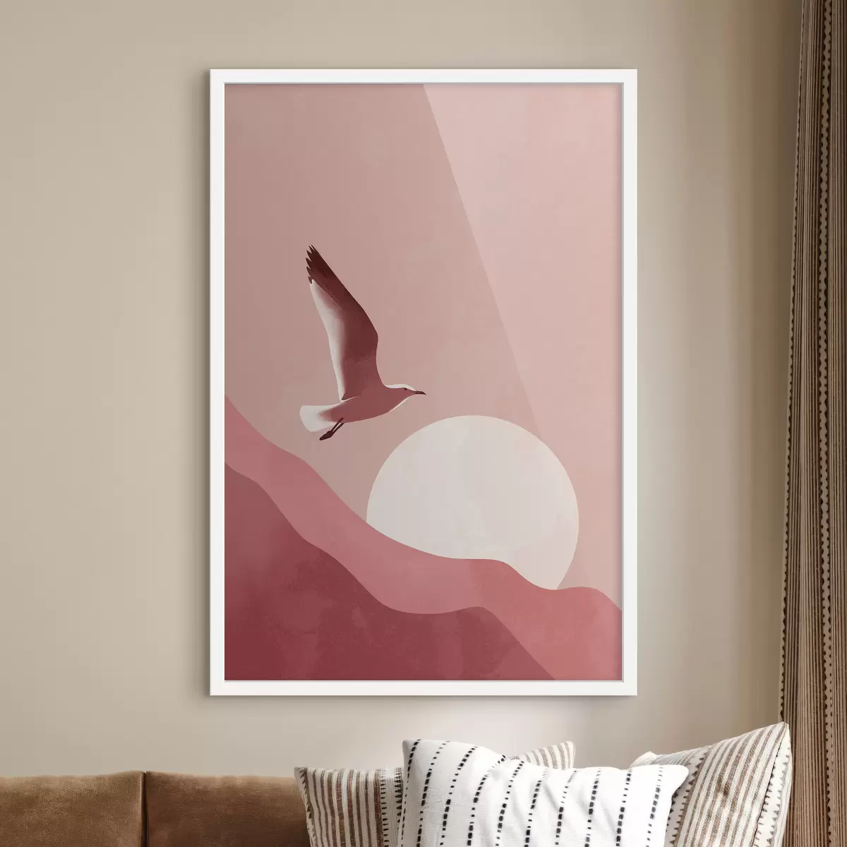 Poster Vogel tegen de achtergrond van de zonsondergang N° f48453