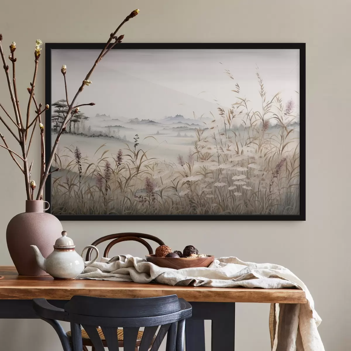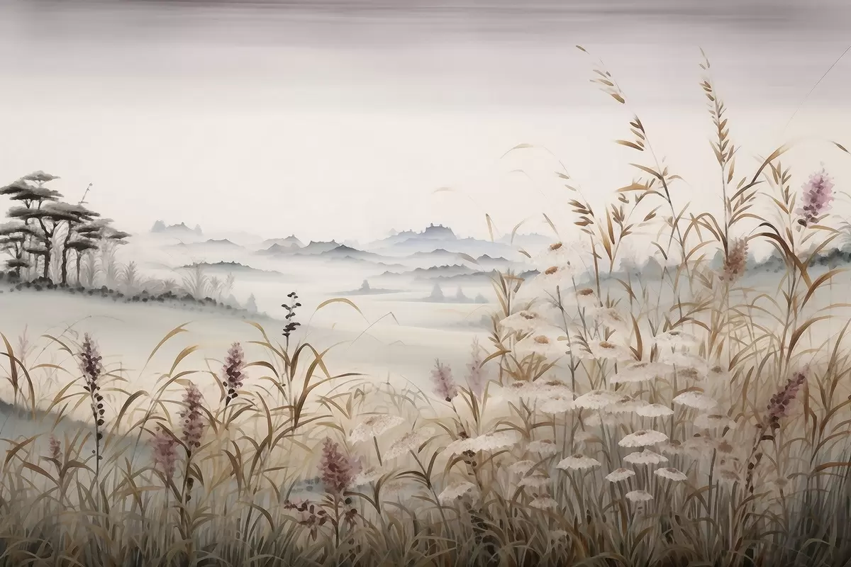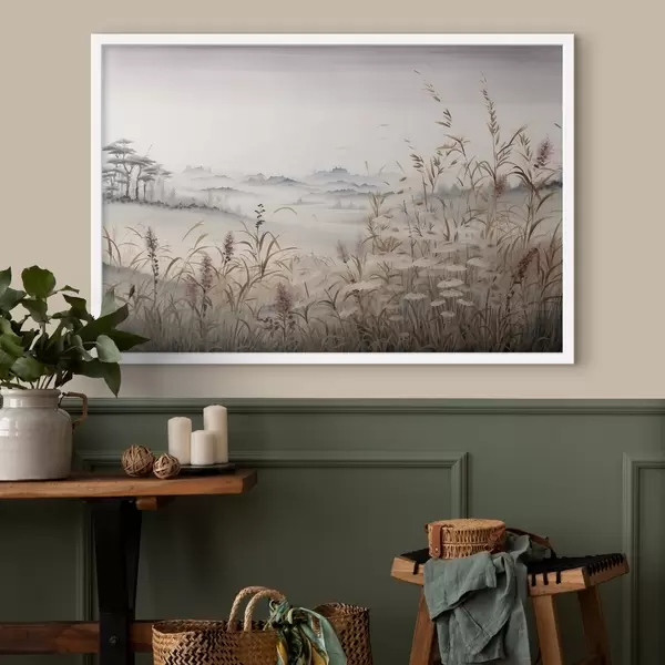 Poster Mistig landschap met grassen N° f48481