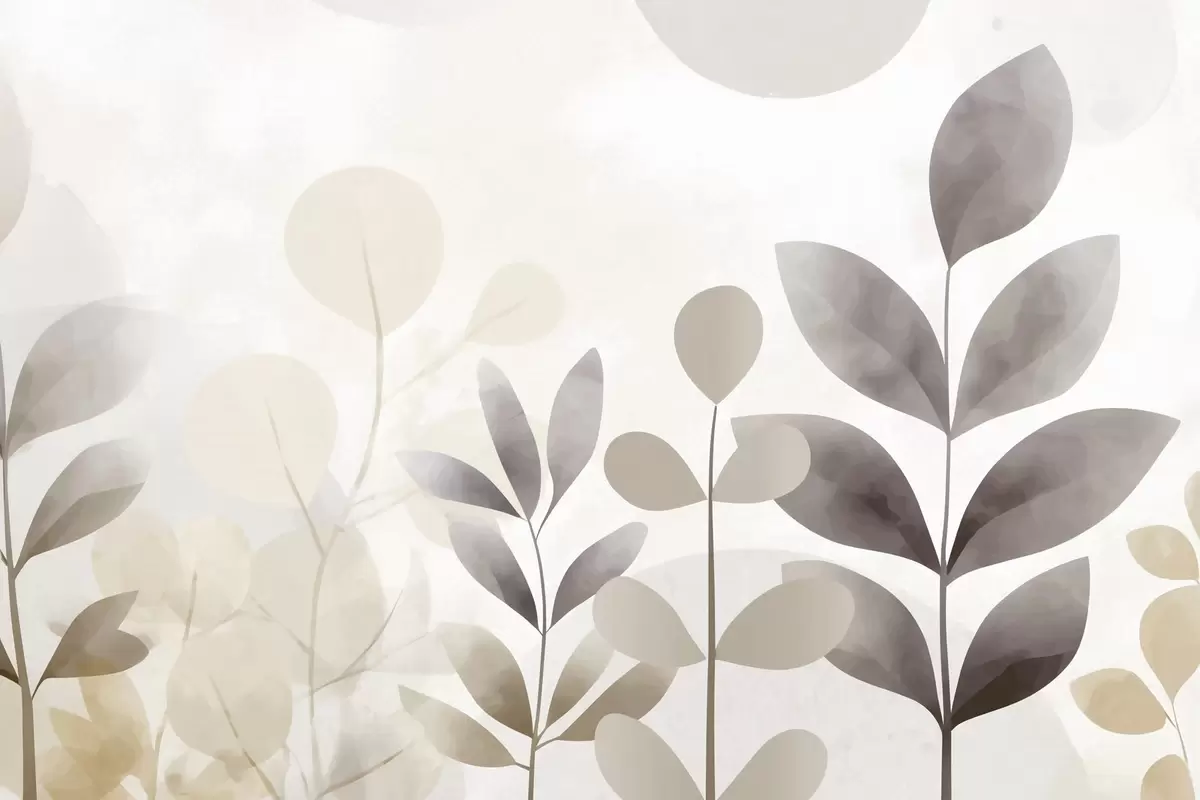 Poster Beige en grijze bladsilhouetten, minimalisme N° f48487