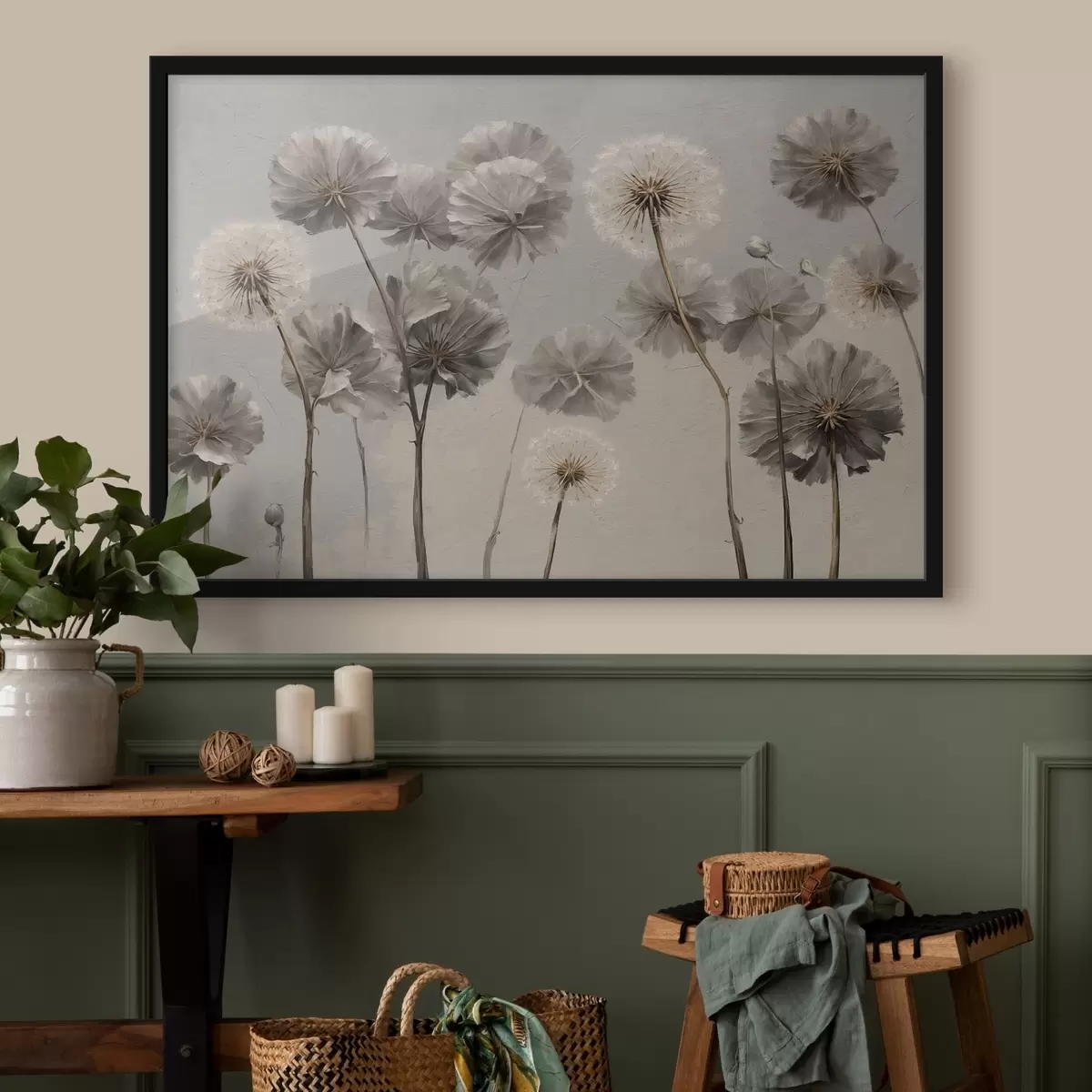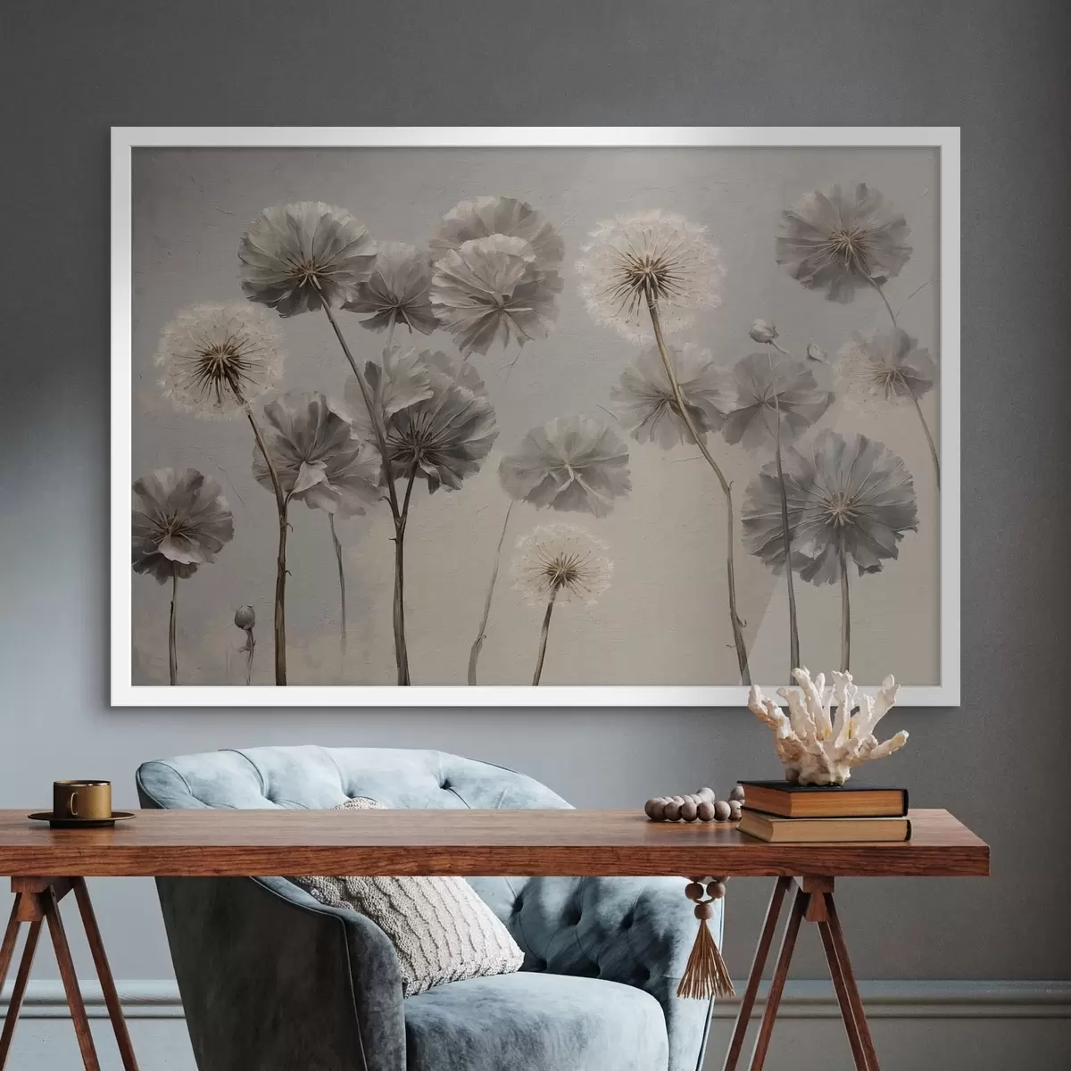 Poster Sierpaardenbloemen in neutrale tinten f48492