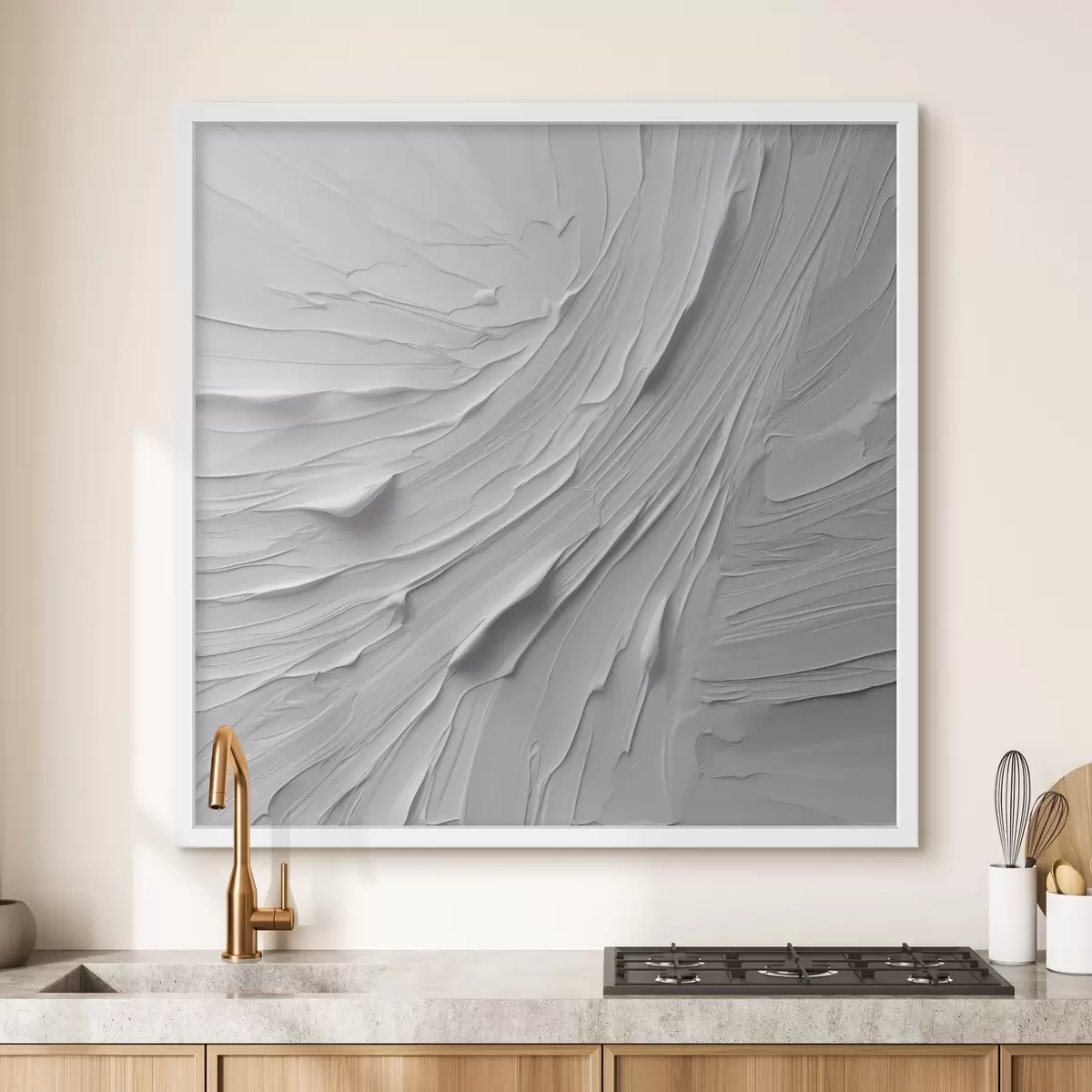 Je kunt het schilderij ophangen aan schroeven. Hiervoor leveren we bevestigingen bij onze foto's, zodat je de foto gemakkelijk kunt ophangen.
