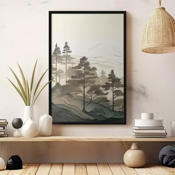 Poster Mistig bos bij zonsopgang N° f48539