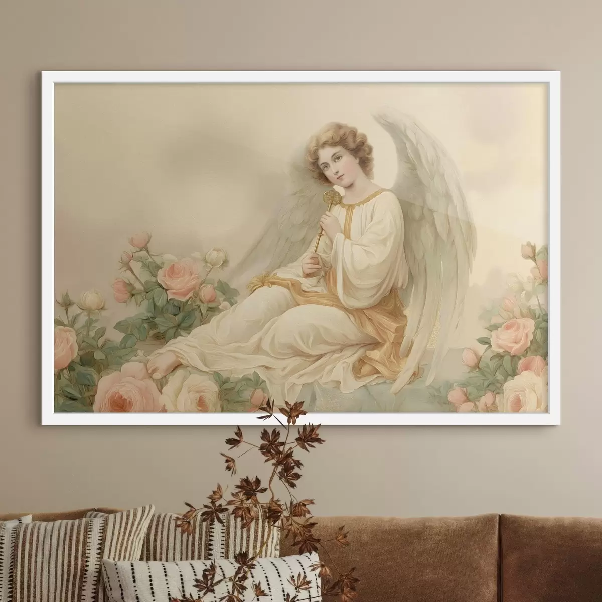 Je kunt het schilderij ophangen aan schroeven. Hiervoor leveren we bevestigingen bij onze foto's, zodat je de foto gemakkelijk kunt ophangen.