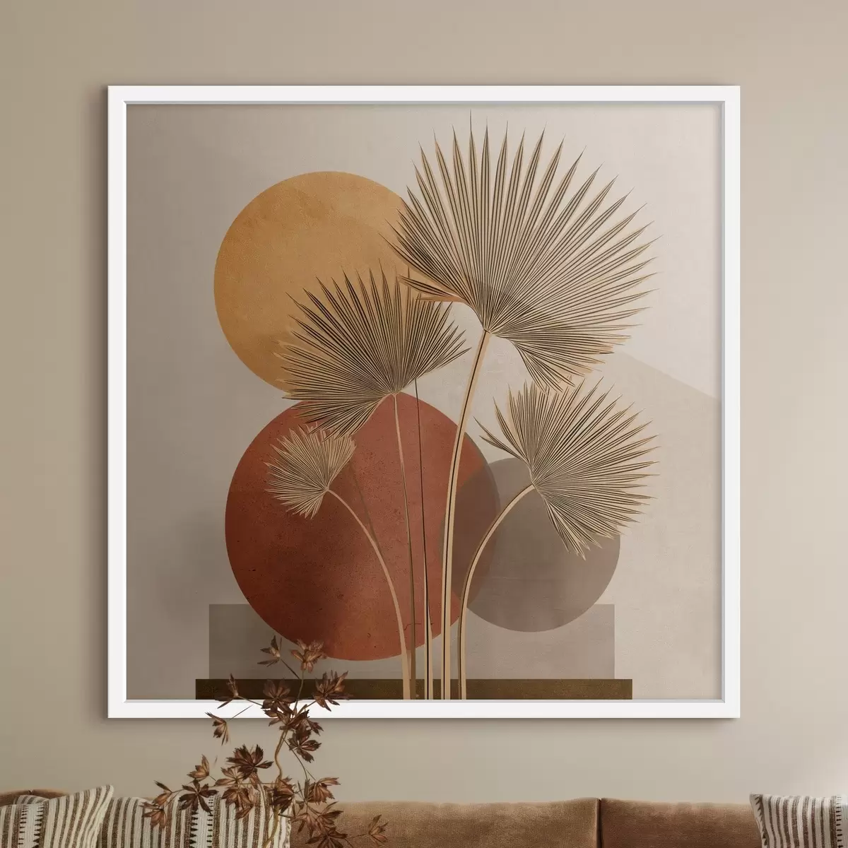 De poster bestaat uit een frame, plexiglas, geprinte afbeelding en spaanplaat achterkant. De poster kan meteen aan de muur worden gehangen dankzij de bevestigingen op de achterkant.