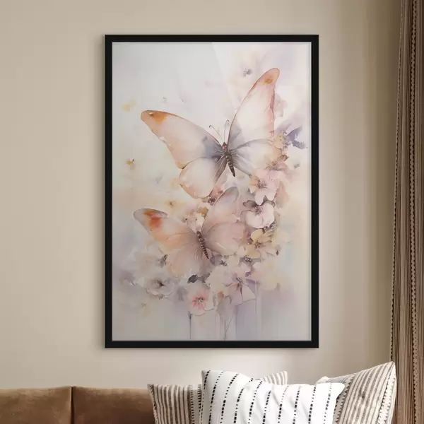 Poster Verfijnde bloemen met vlinders, in pastelkleuren f48563