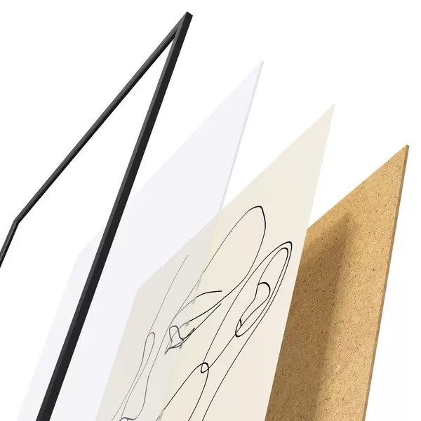 De poster bestaat uit een frame, plexiglas, geprinte afbeelding en spaanplaat achterkant. De poster kan meteen aan de muur worden gehangen dankzij de bevestigingen op de achterkant.