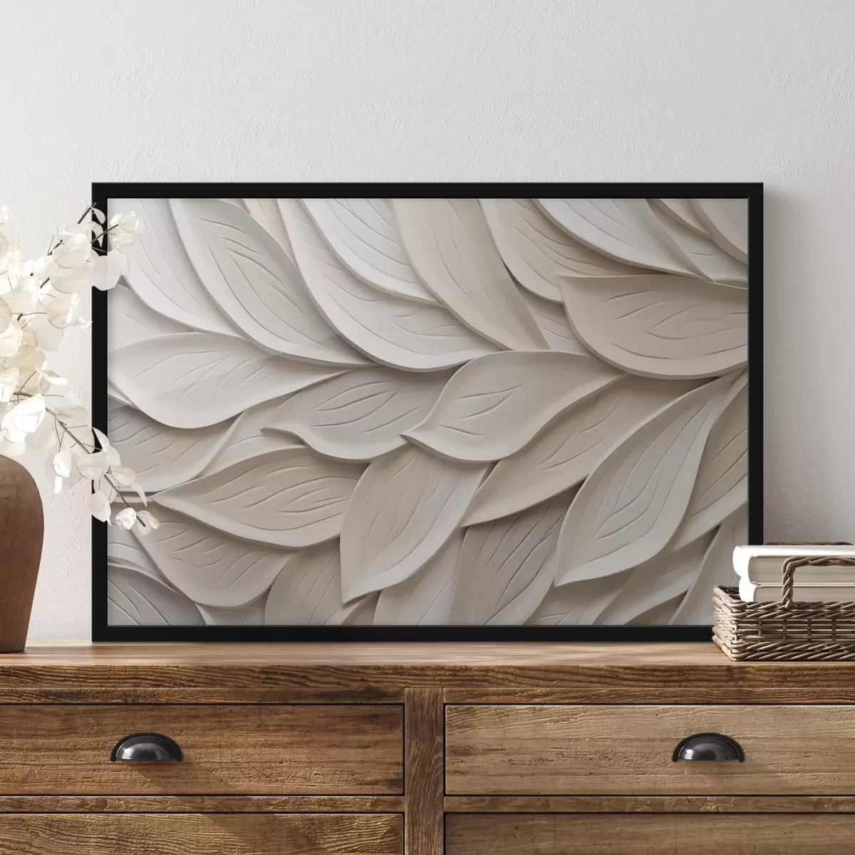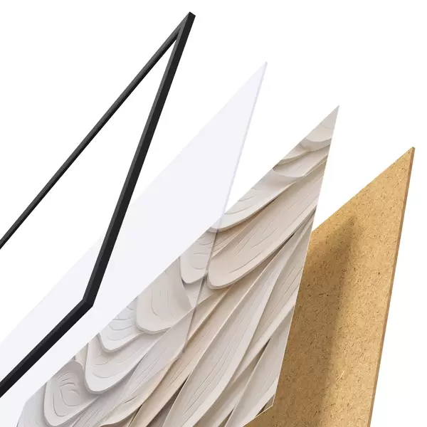 De poster bestaat uit een frame, plexiglas, geprinte afbeelding en spaanplaat achterkant. De poster kan meteen aan de muur worden gehangen dankzij de bevestigingen op de achterkant.