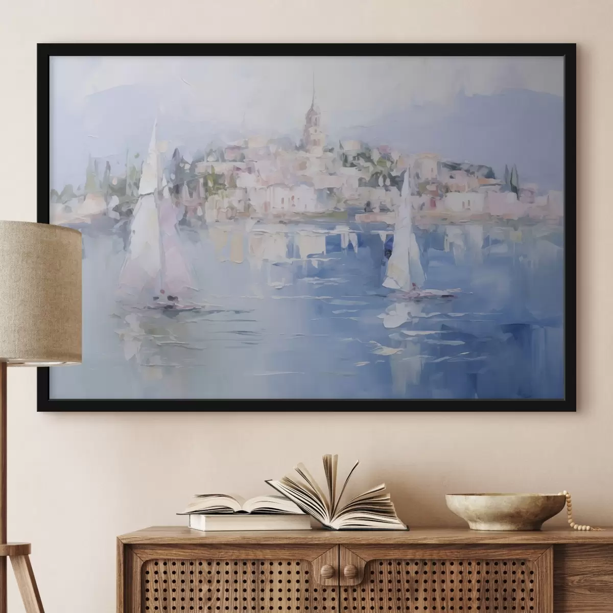 Je kunt het schilderij ophangen aan schroeven. Hiervoor leveren we bevestigingen bij onze foto's, zodat je de foto gemakkelijk kunt ophangen.
