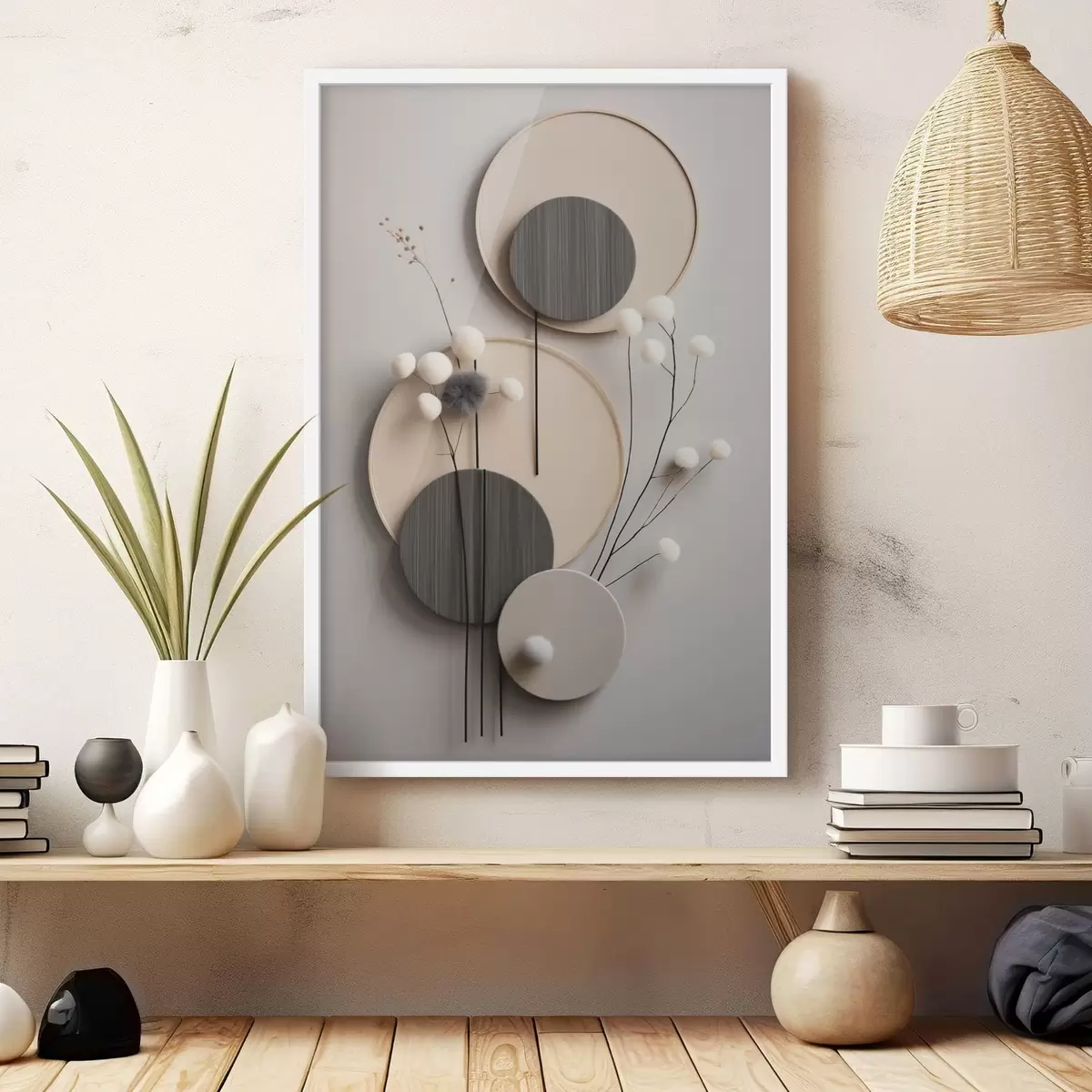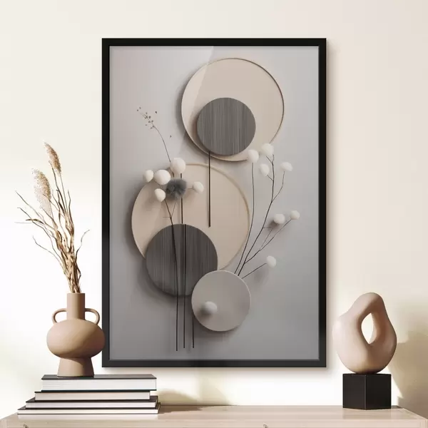 Poster Ronde panelen met droge takjes en zachte balletjes f48601