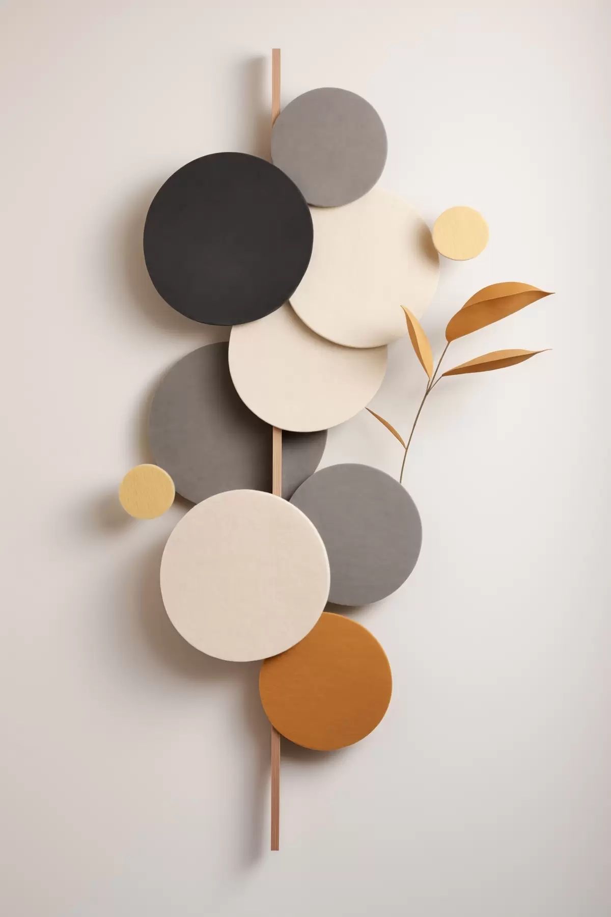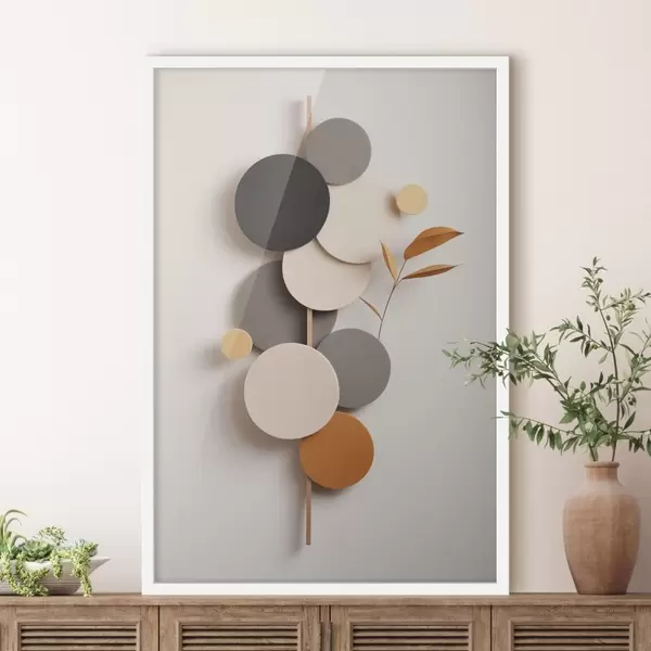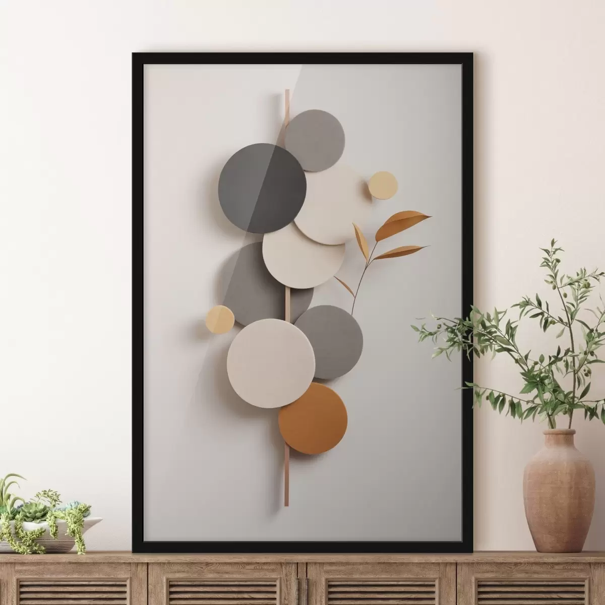 Poster Abstracte cirkels met bladeren in neutrale tinten N° f48602