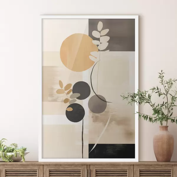 Poster Een abstracte compositie met bladeren en cirkels N° f48612