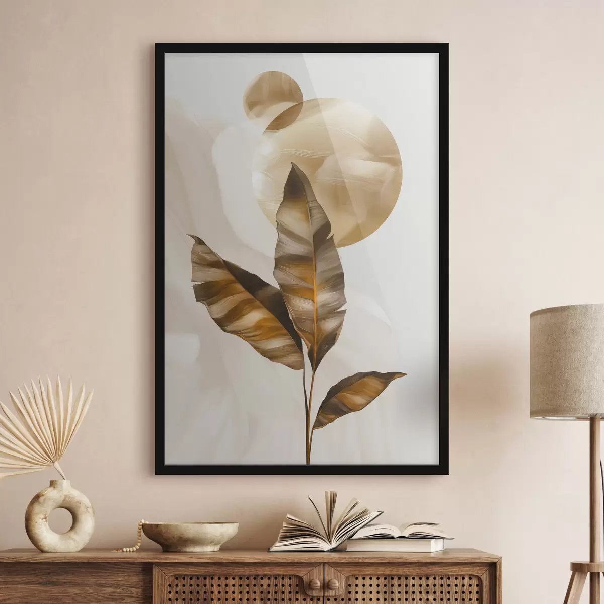 Poster Een abstracte compositie van bladeren en cirkels f48614