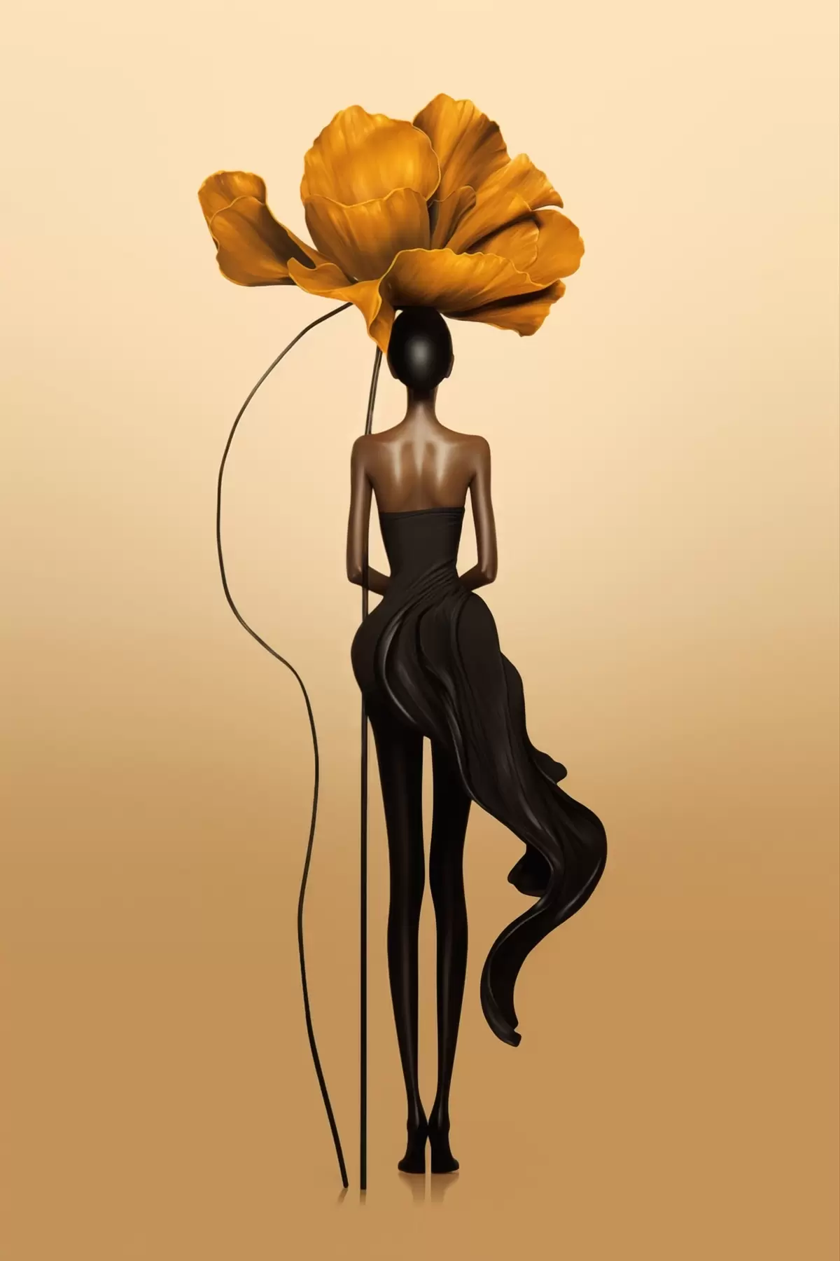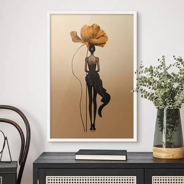 Poster Gestileerd figuur met een grote bloem als hoofd f48618