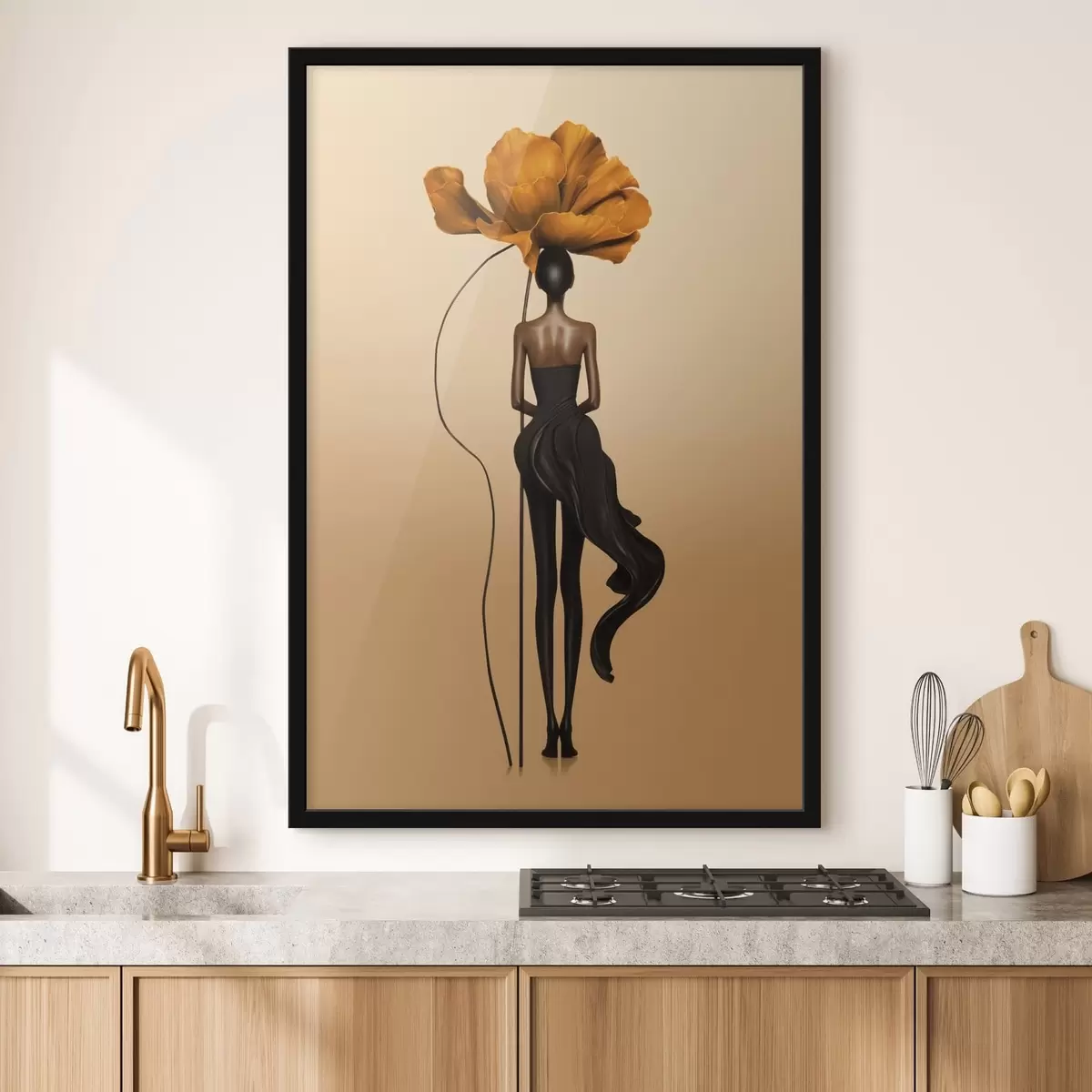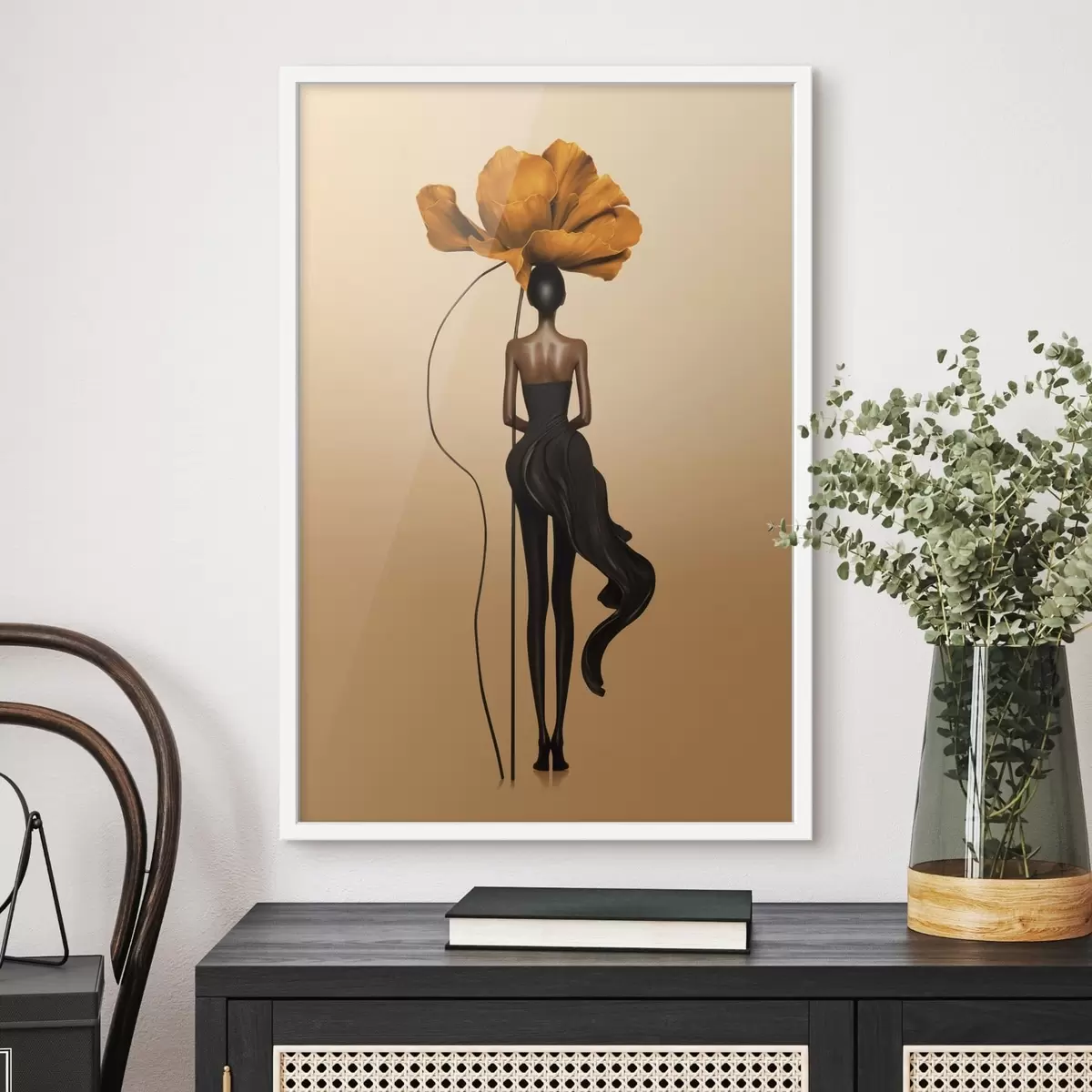 Poster Gestileerd figuur met een grote bloem als hoofd N° f48618