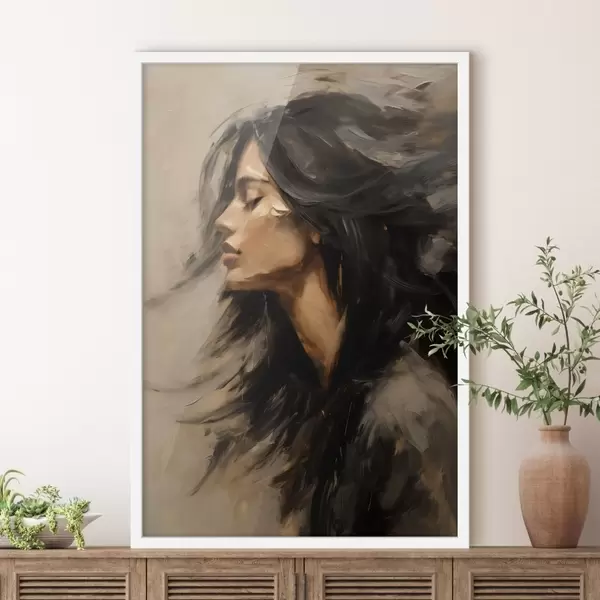 Poster Portret van een vrouw met golvend haar in schilderachtige stijl N° f48622