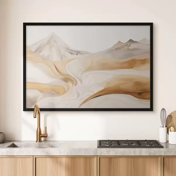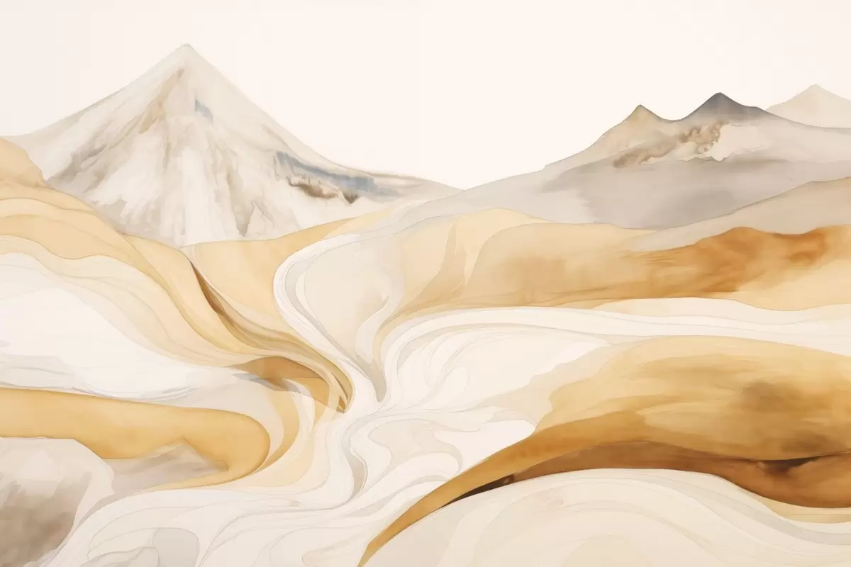 Poster Gestileerd landschap met bergen en vloeiende lijnen N° f48626