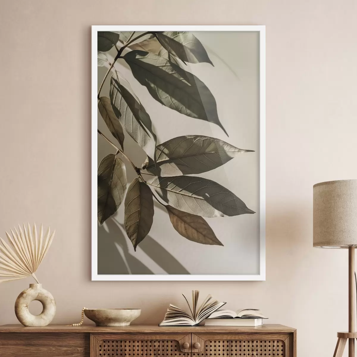 Poster Olijftakken, beige en groene planten N° f48627