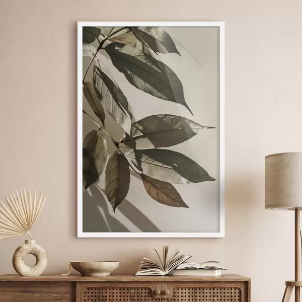 Poster Olijftakken, beige en groene planten f48627
