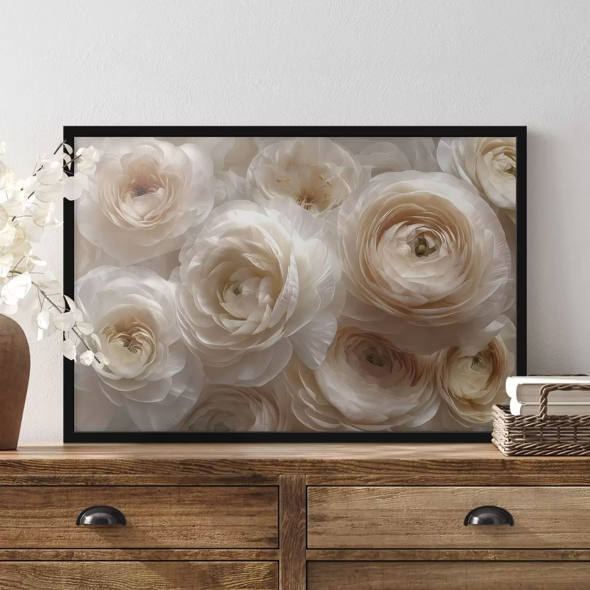 Poster Witte rozen, een verfijnd bloemstuk N° f48628