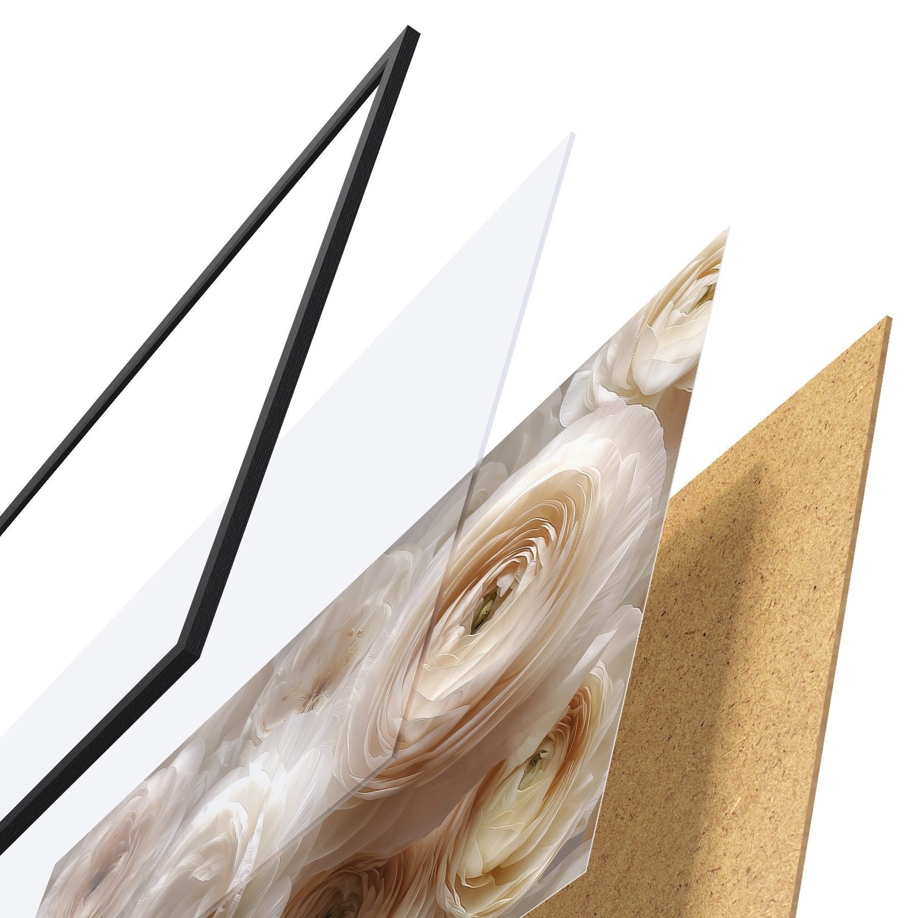 De poster bestaat uit een frame, plexiglas, geprinte afbeelding en spaanplaat achterkant. De poster kan meteen aan de muur worden gehangen dankzij de bevestigingen op de achterkant.