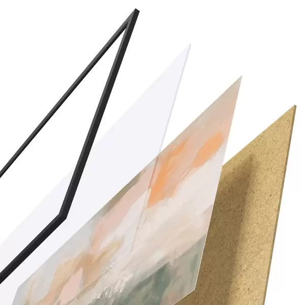 De poster bestaat uit een frame, plexiglas, geprinte afbeelding en spaanplaat achterkant. De poster kan meteen aan de muur worden gehangen dankzij de bevestigingen op de achterkant.