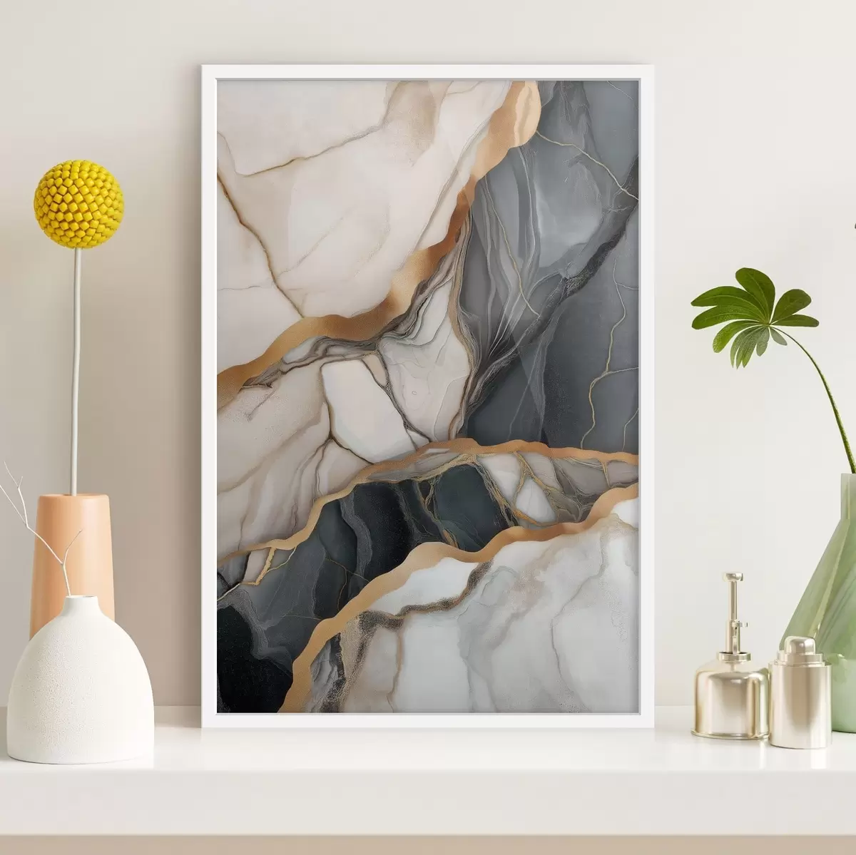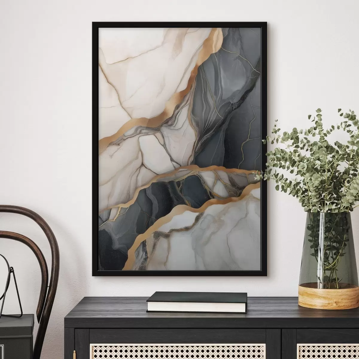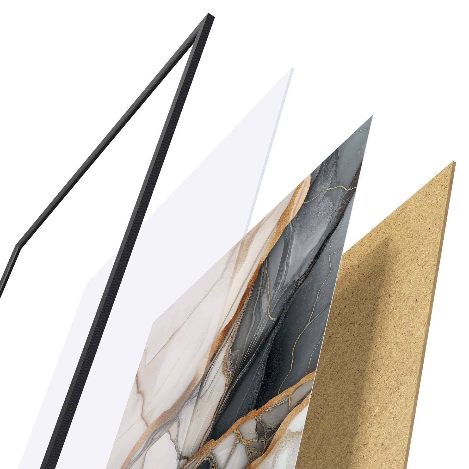 De poster bestaat uit een frame, plexiglas, geprinte afbeelding en spaanplaat achterkant. De poster kan meteen aan de muur worden gehangen dankzij de bevestigingen op de achterkant.