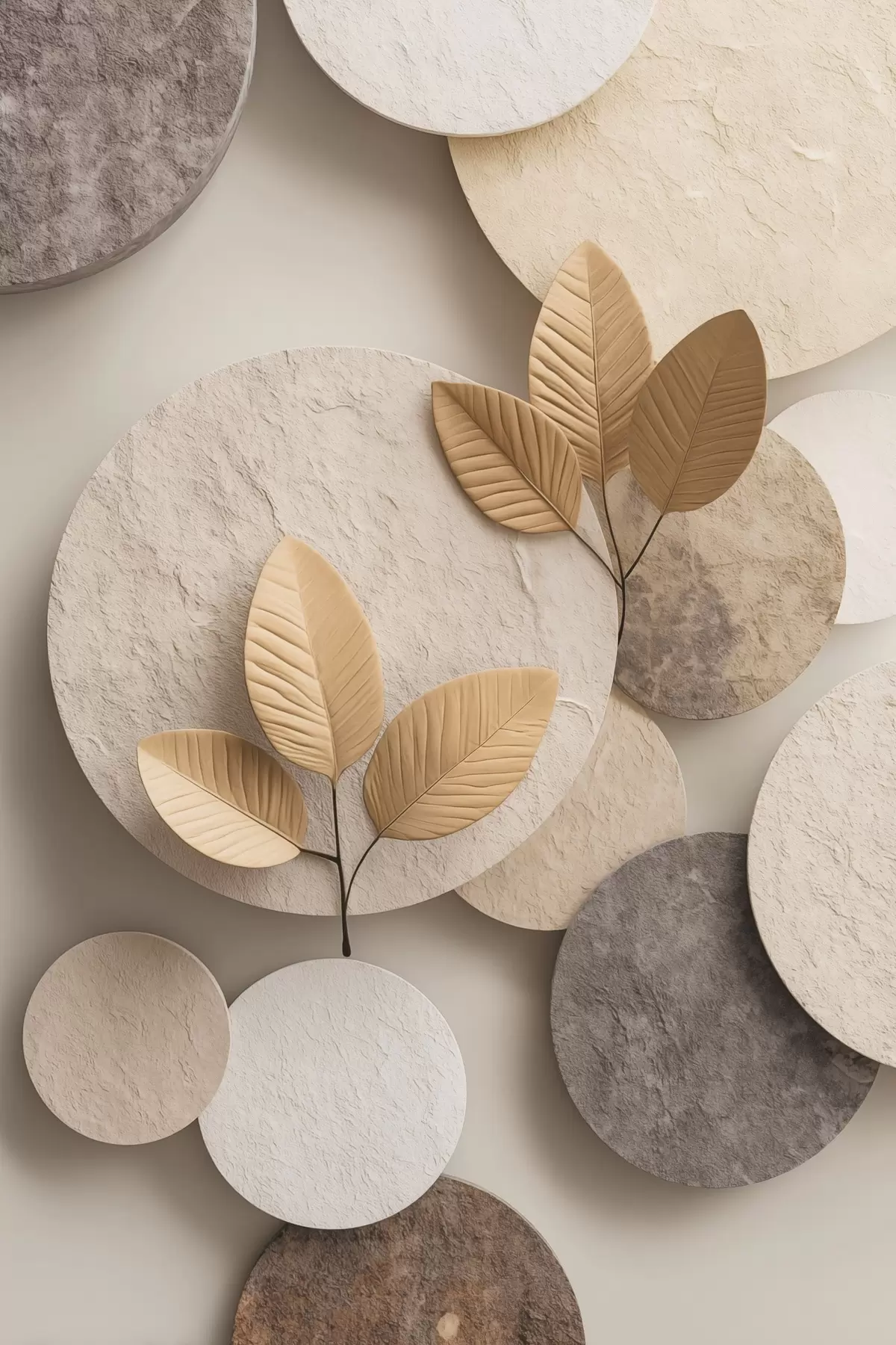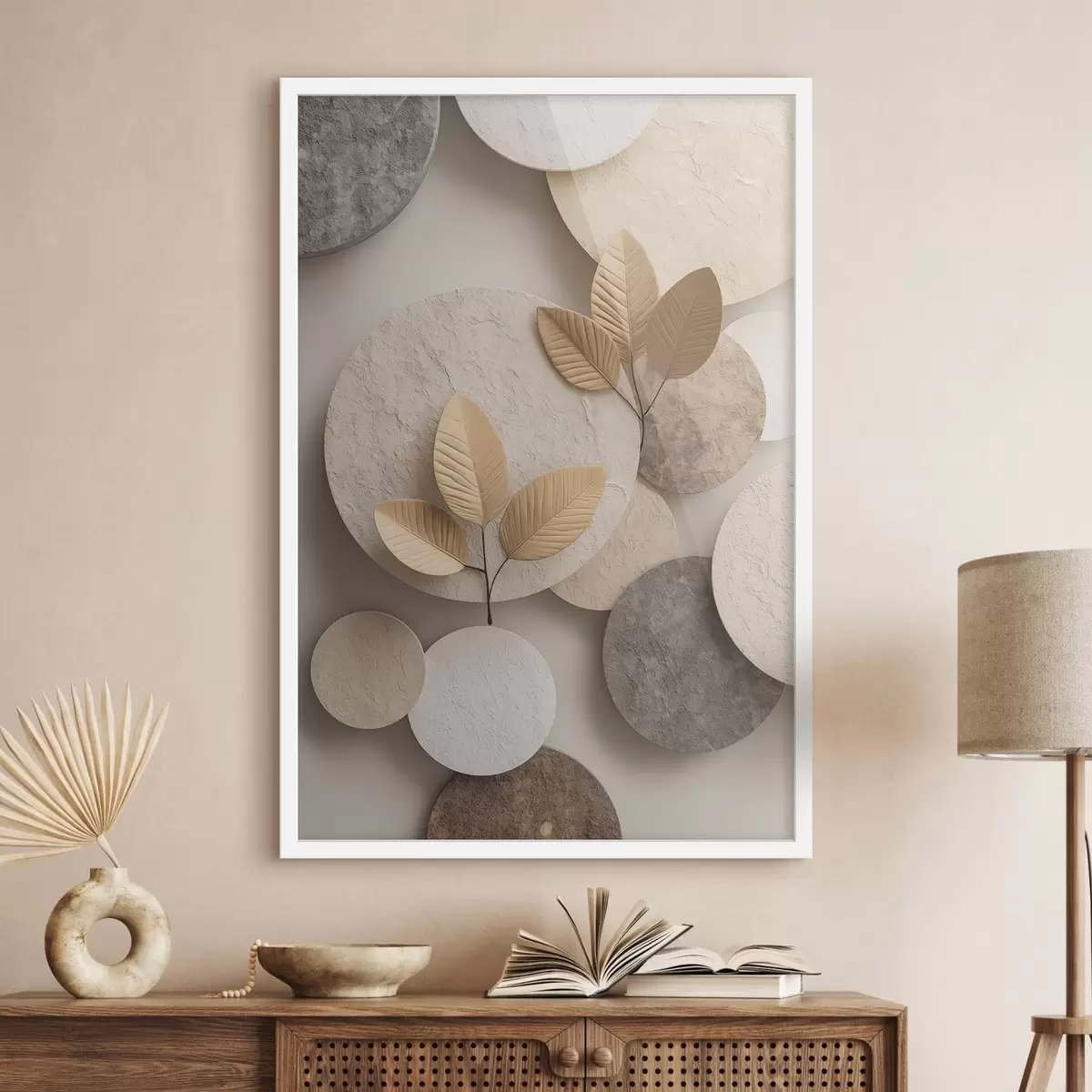 Poster Een compositie met bladeren en cirkels f48692