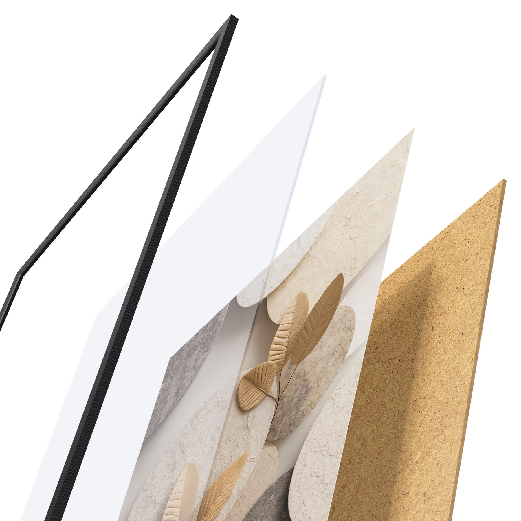 De poster bestaat uit een frame, plexiglas, geprinte afbeelding en spaanplaat achterkant. De poster kan meteen aan de muur worden gehangen dankzij de bevestigingen op de achterkant.
