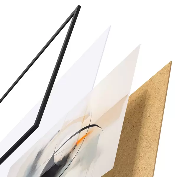 De poster bestaat uit een frame, plexiglas, geprinte afbeelding en spaanplaat achterkant. De poster kan meteen aan de muur worden gehangen dankzij de bevestigingen op de achterkant.
