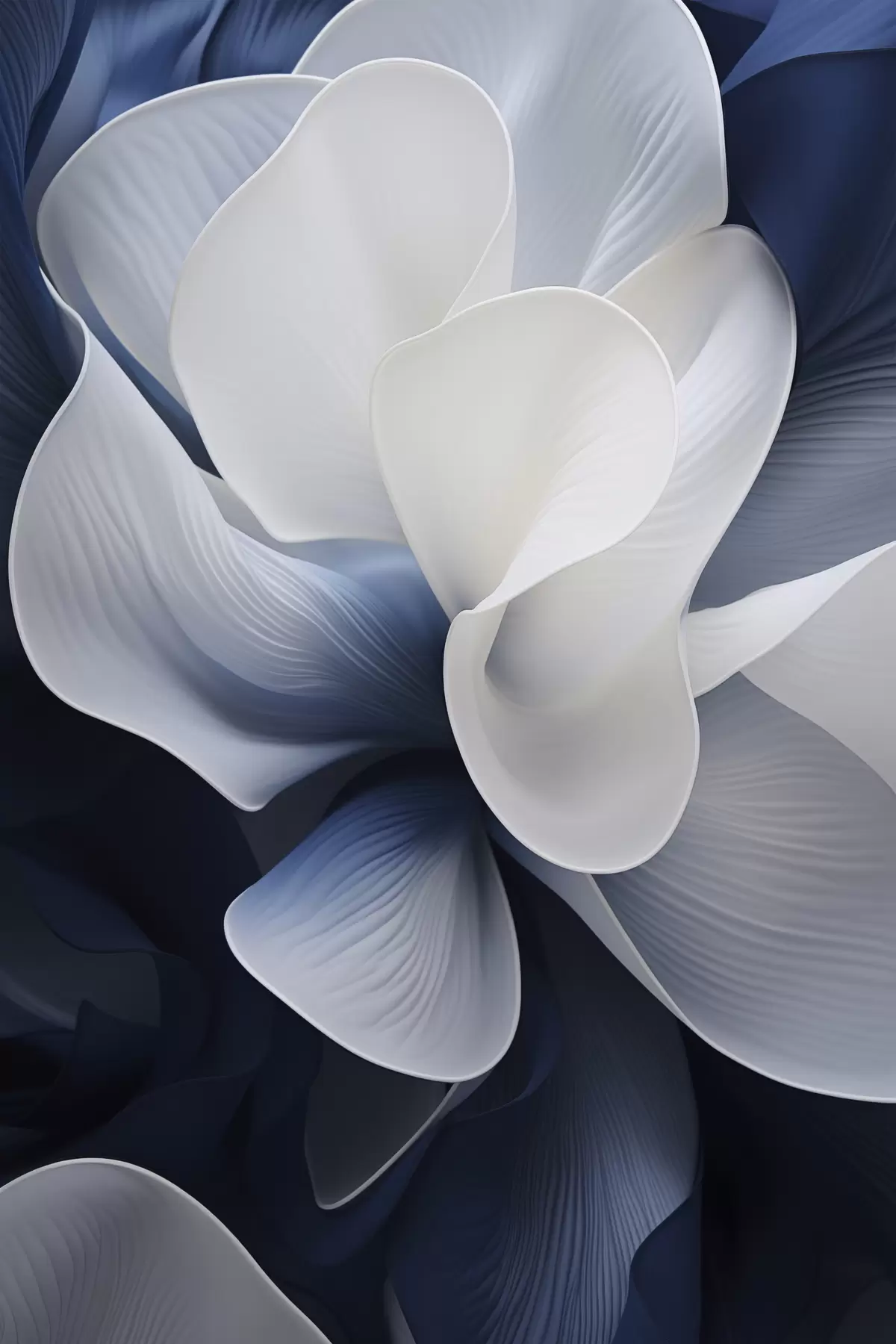 Poster Abstracte blauw-witte bloemblaadjes tegen een donkere achtergrond N° f48732