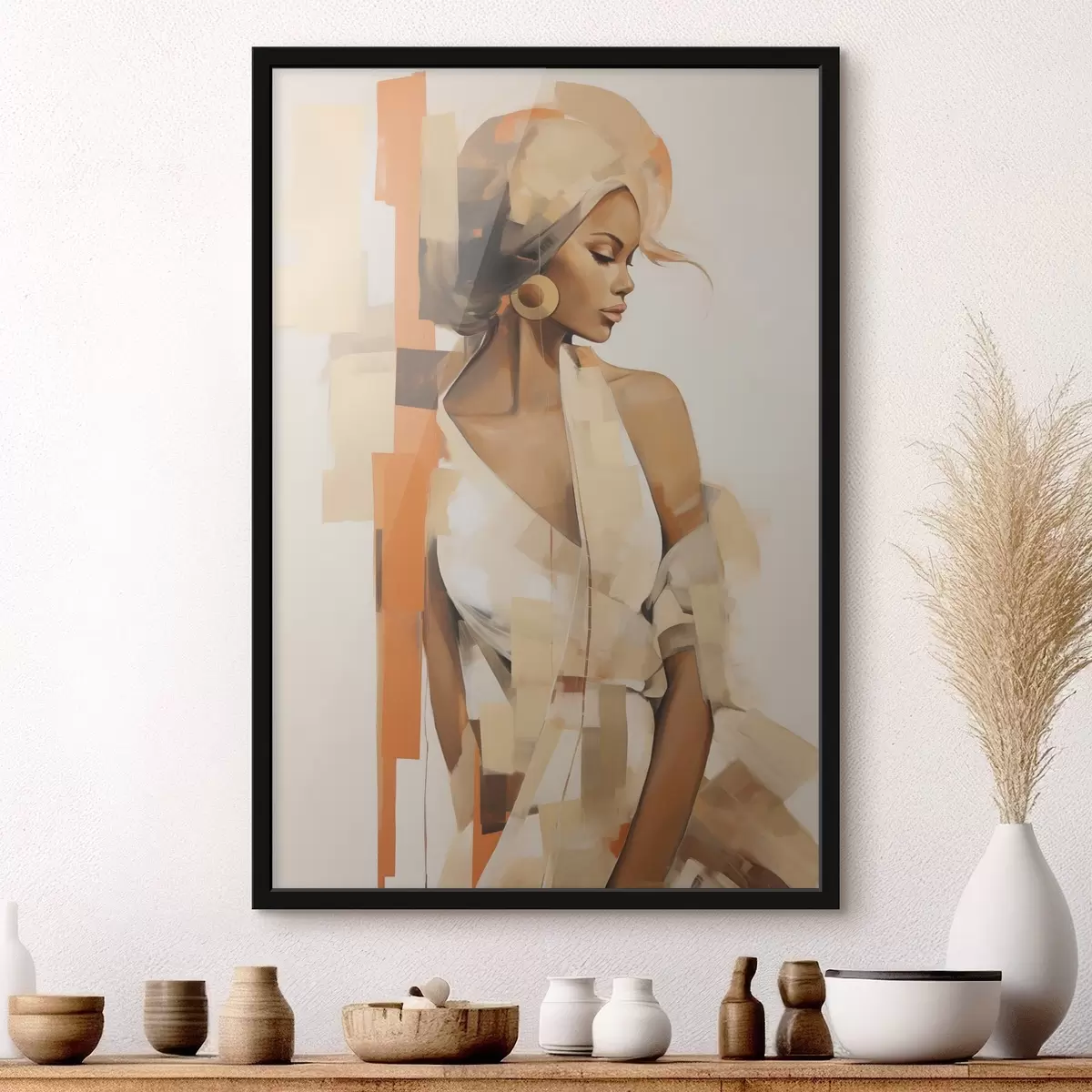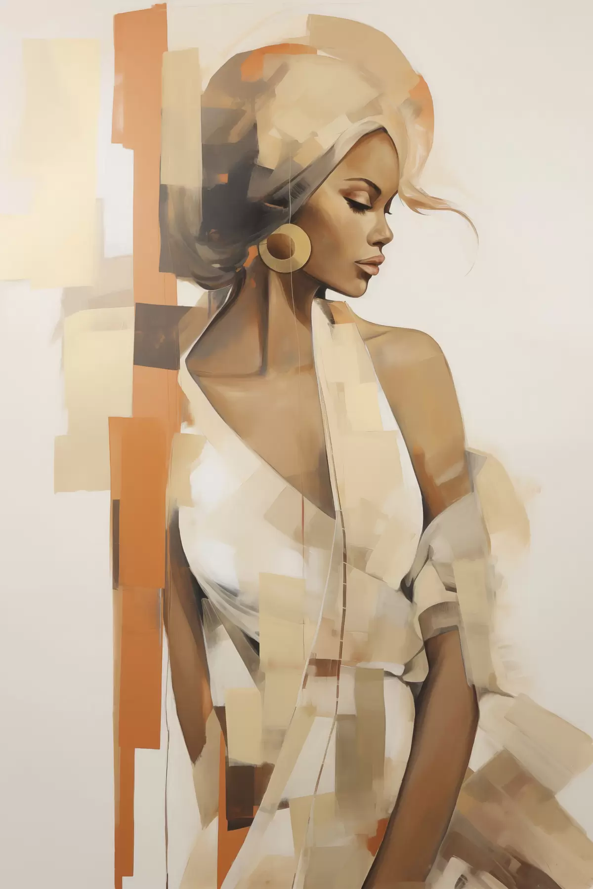 Poster Abstract vrouwportret met oranje en beige vormen N° f48735