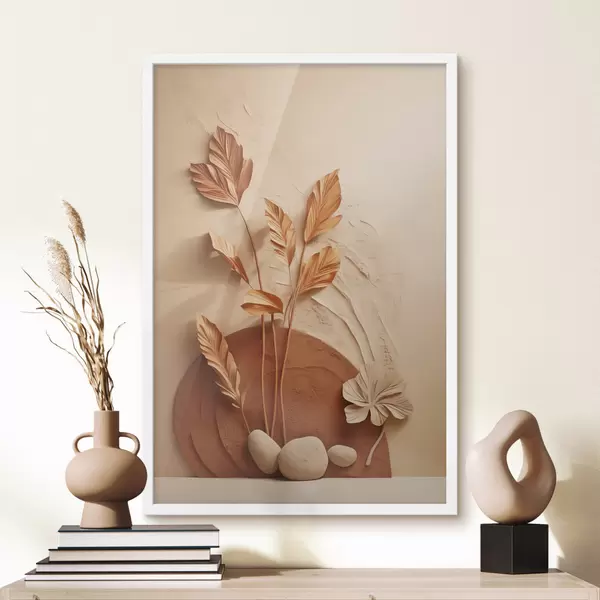 Poster Een minimalistisch kunstwerk met gedroogde bloemen en pampasgras, op een achtergrond met textuur f48740