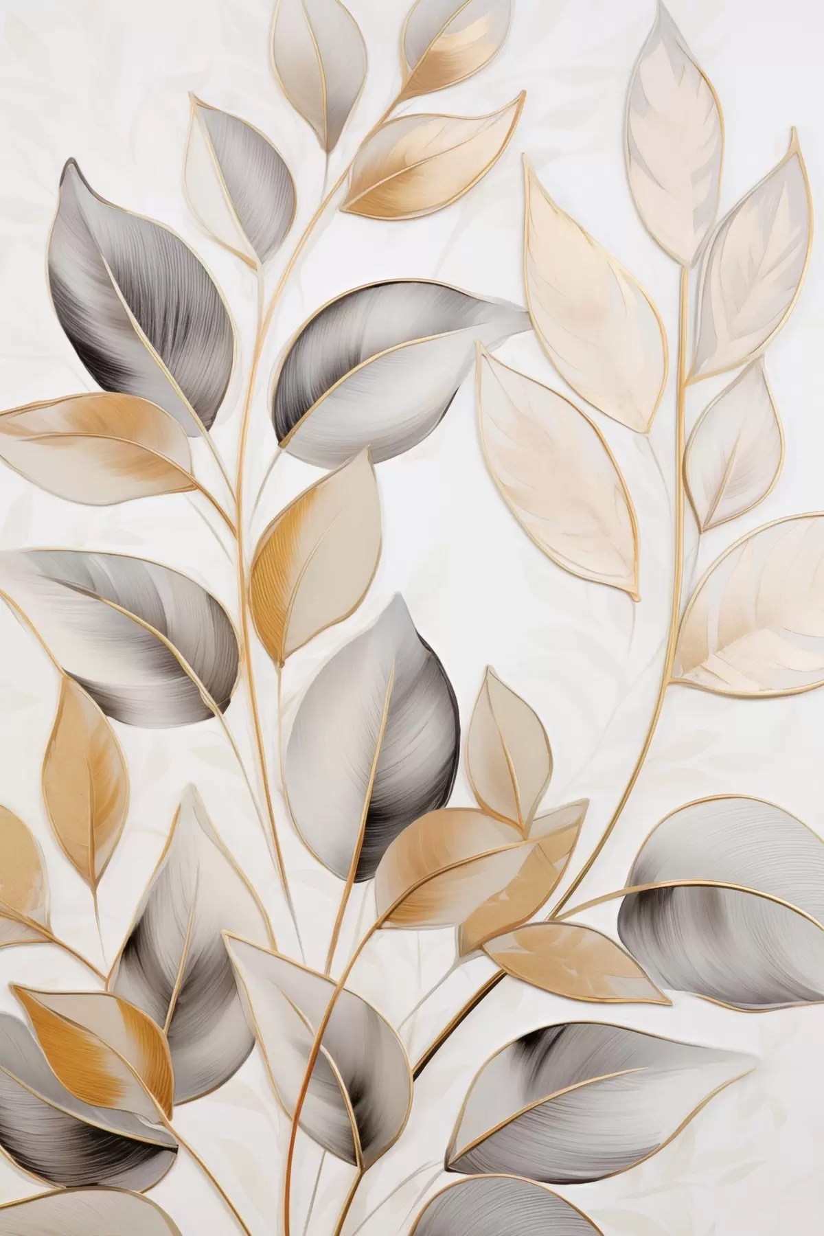 Poster Grote, doorschijnende bladeren in grijze en gele tinten f48746