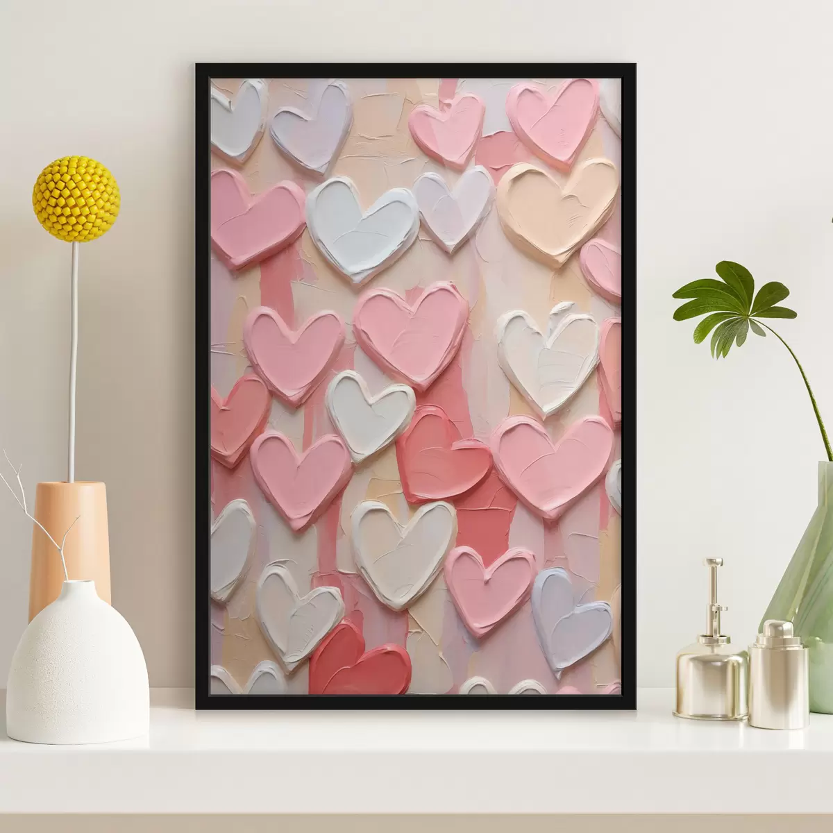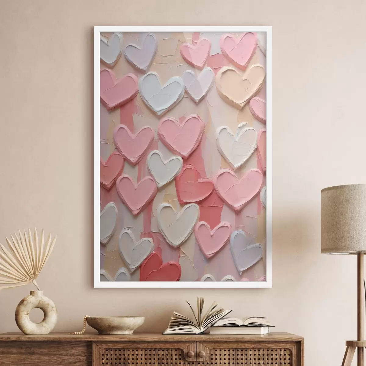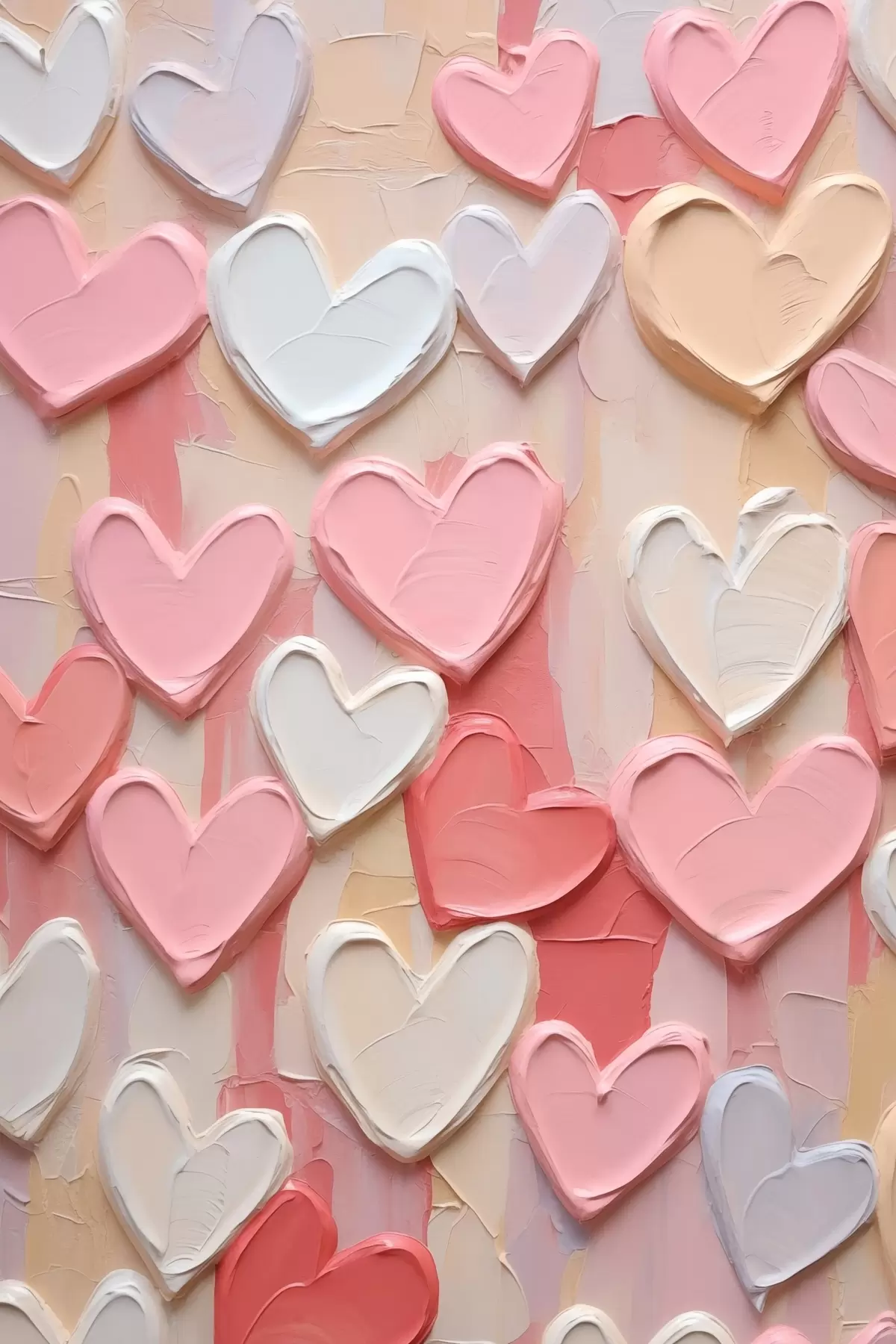 Poster Hartjes in verschillende tinten perzik en roze, uitgevoerd in een gestructureerde, geschilderde stijl N° f48751