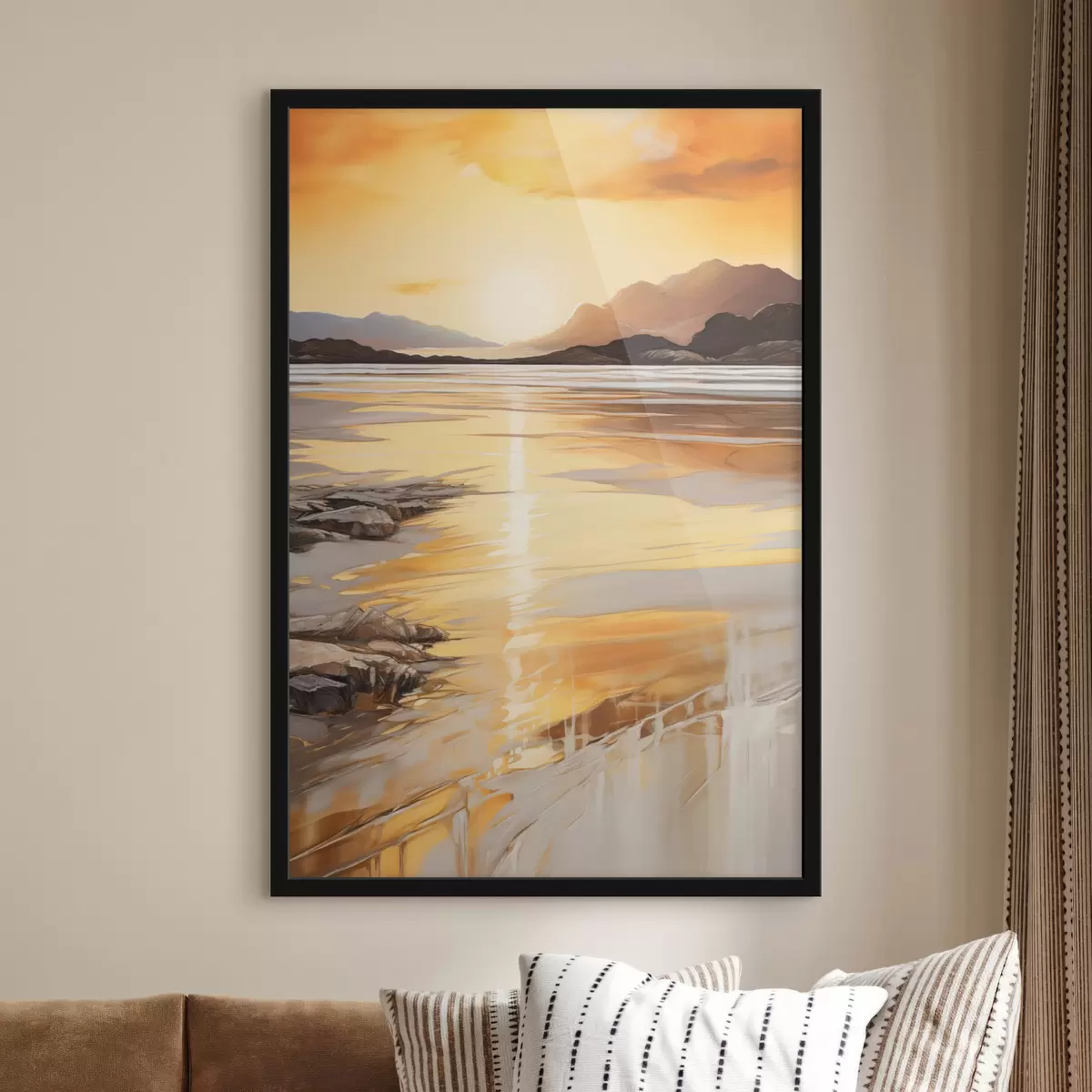 Je kunt het schilderij ophangen aan schroeven. Hiervoor leveren we bevestigingen bij onze foto's, zodat je de foto gemakkelijk kunt ophangen.