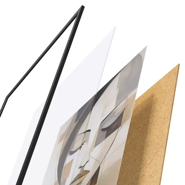 De poster bestaat uit een frame, plexiglas, geprinte afbeelding en spaanplaat achterkant. De poster kan meteen aan de muur worden gehangen dankzij de bevestigingen op de achterkant.