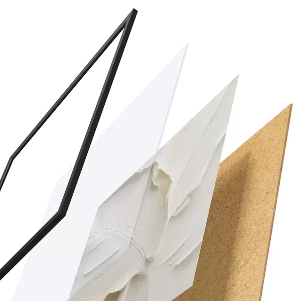 De poster bestaat uit een frame, plexiglas, geprinte afbeelding en spaanplaat achterkant. De poster kan meteen aan de muur worden gehangen dankzij de bevestigingen op de achterkant.