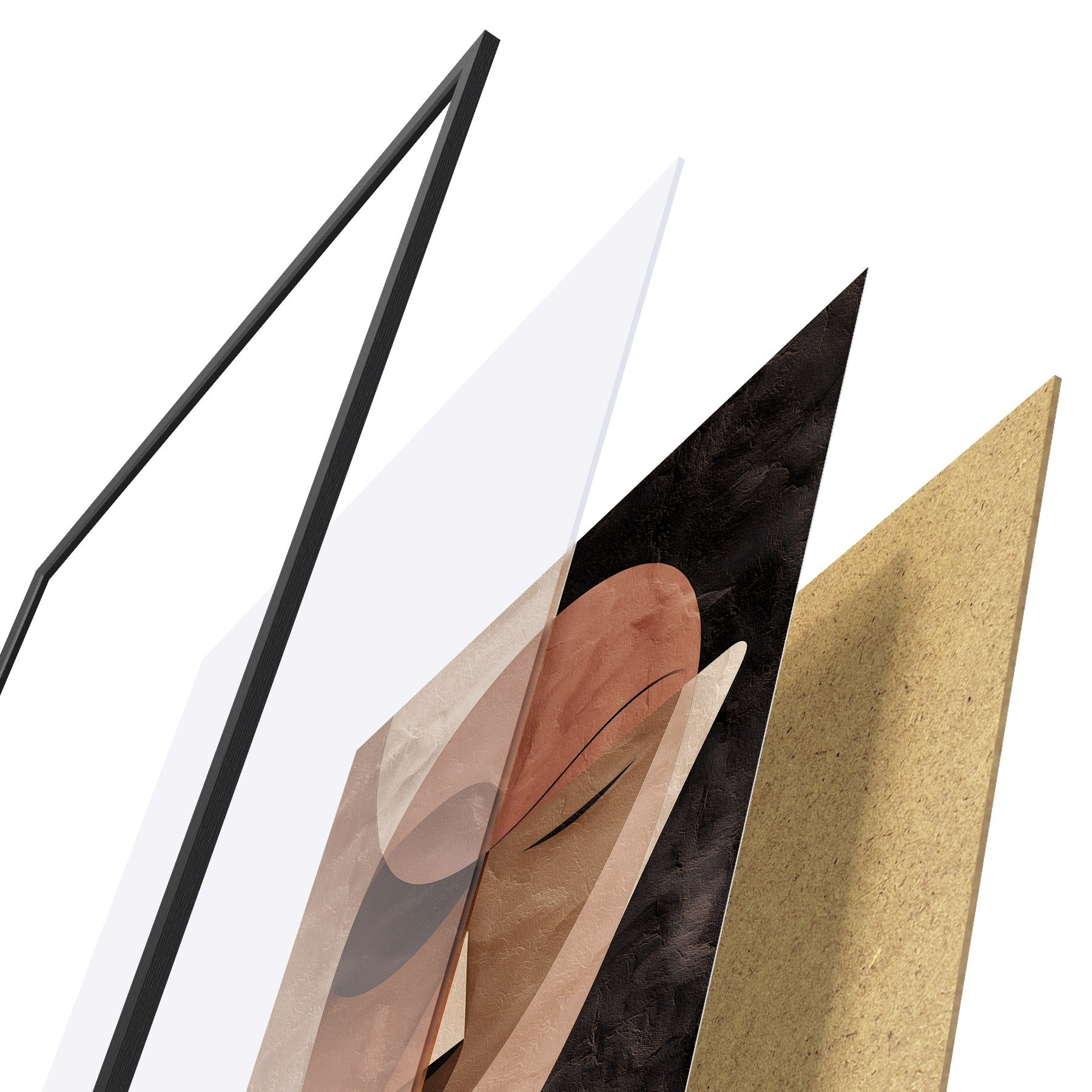 De poster bestaat uit een frame, plexiglas, geprinte afbeelding en spaanplaat achterkant. De poster kan meteen aan de muur worden gehangen dankzij de bevestigingen op de achterkant.