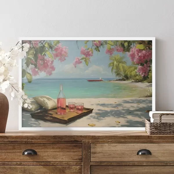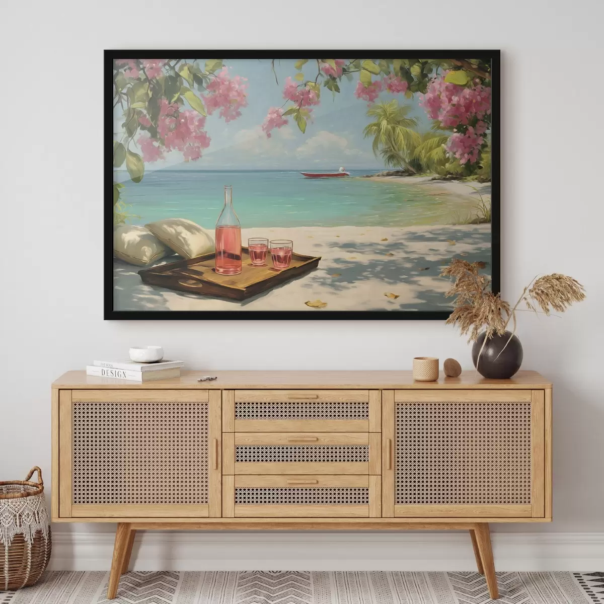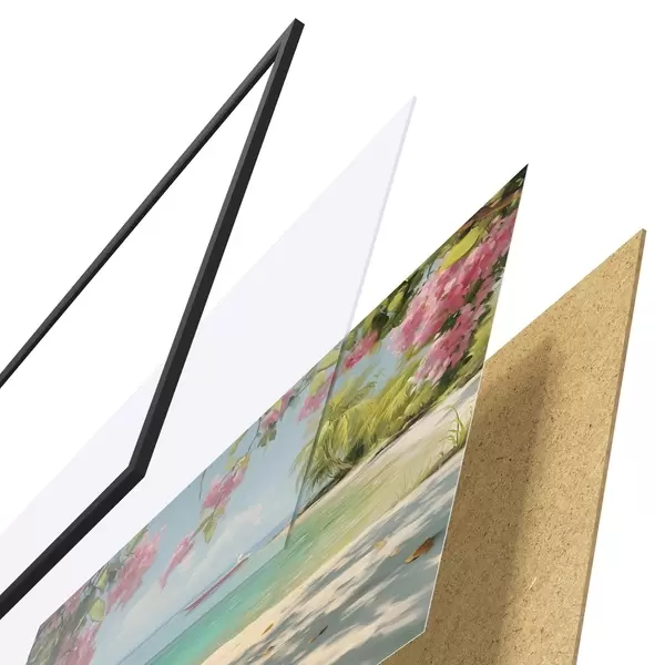 De poster bestaat uit een frame, plexiglas, geprinte afbeelding en spaanplaat achterkant. De poster kan meteen aan de muur worden gehangen dankzij de bevestigingen op de achterkant.