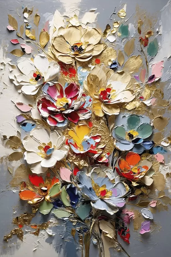 Poster Bloemstuk in impasto-stijl met bloemblaadjes met textuur N° f48832
