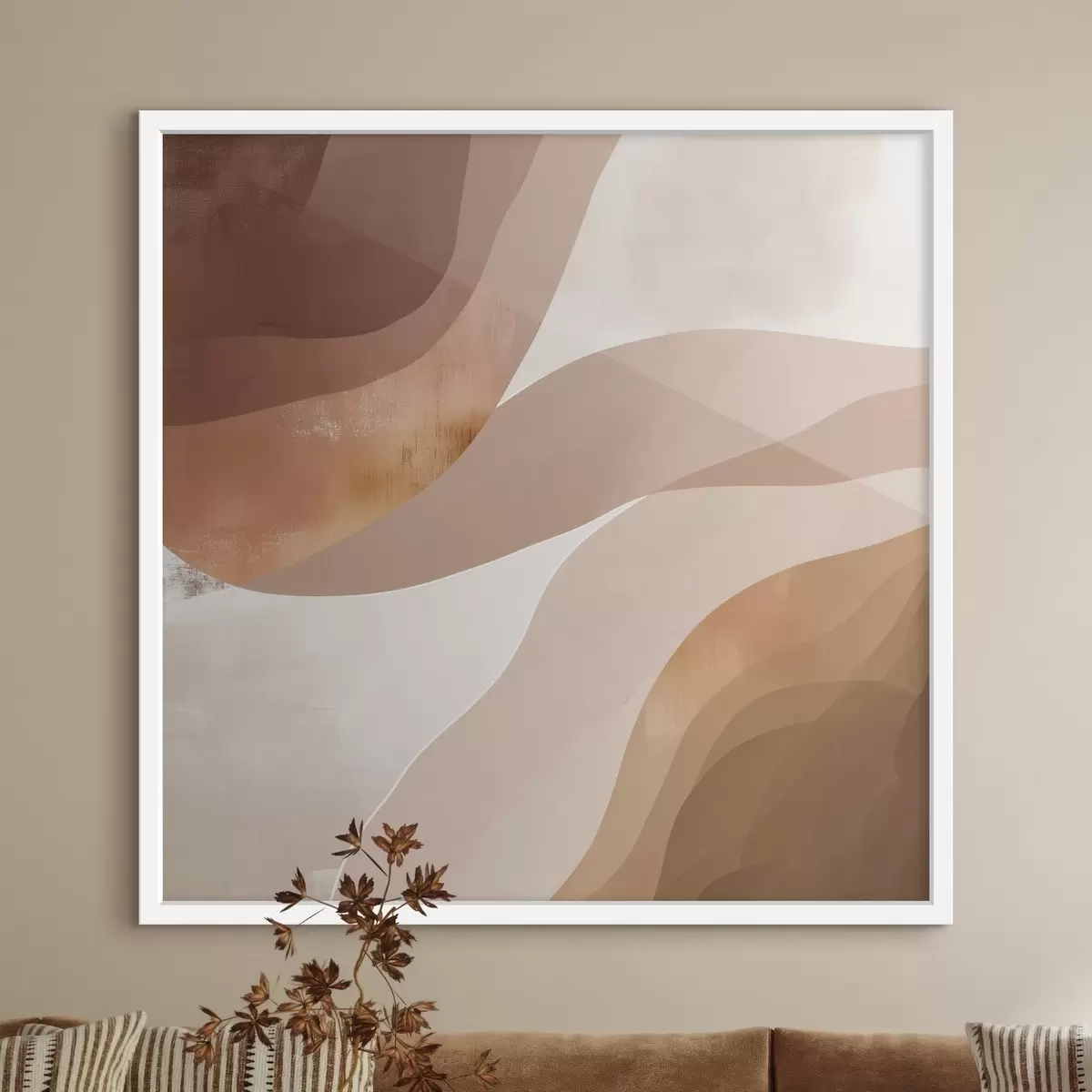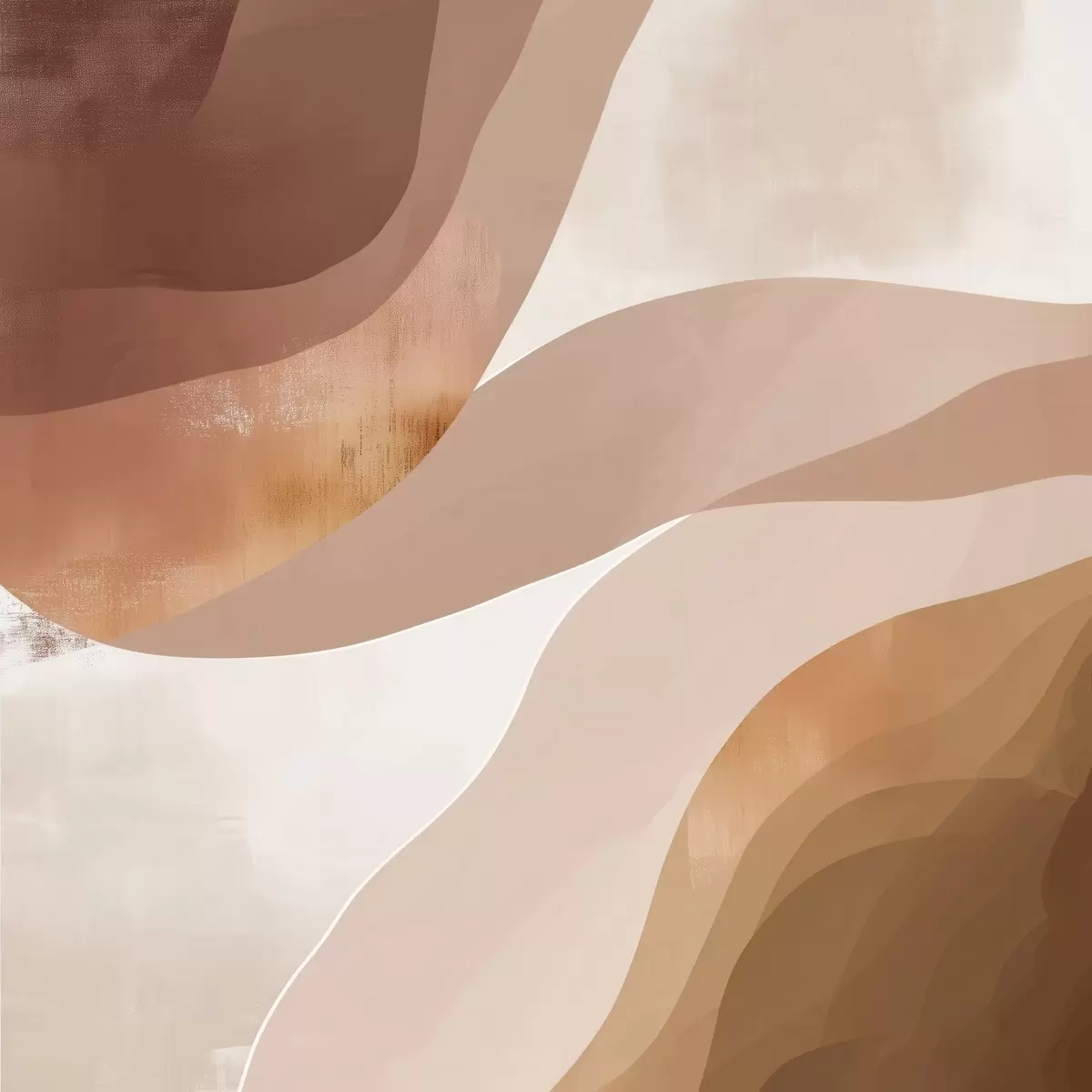 Poster Abstracte golvende vormen in een koffiebruin kleurenpalet N° f48836